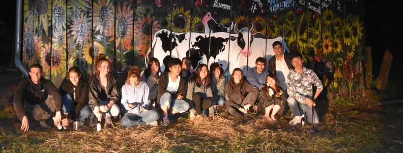 Als große Überraschung für die Laakenhof Kommunarden und alle Beteiligten hat die Workcamp-Gruppe ein großes Wandbild auf der Remise im Eingangsbereich zum Hof kreiert. Es war schon ein echt emotionaler Moment, als das Wandbild enthüllt wurde…