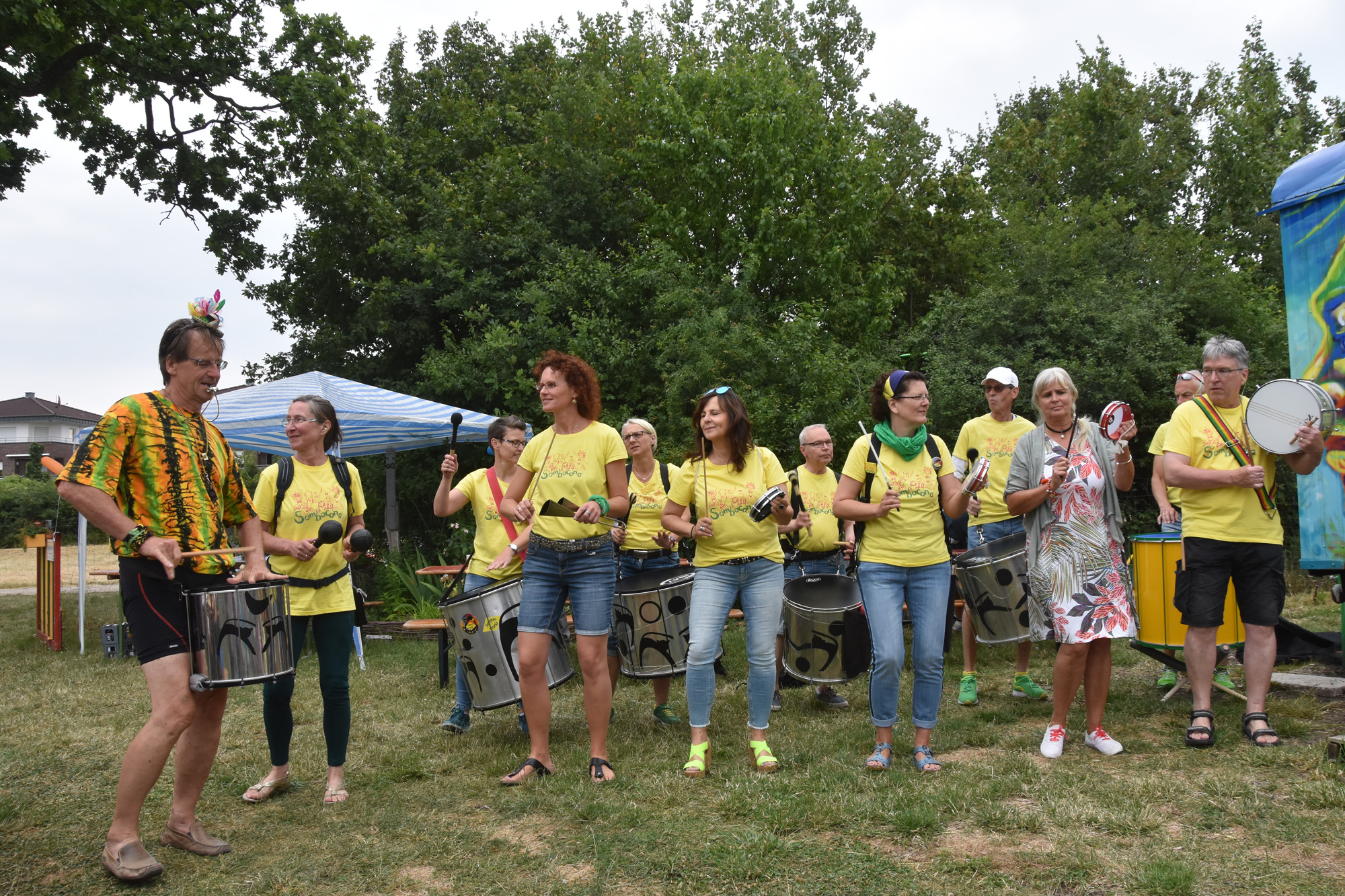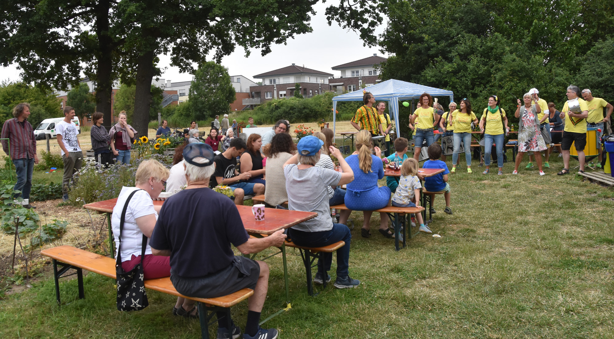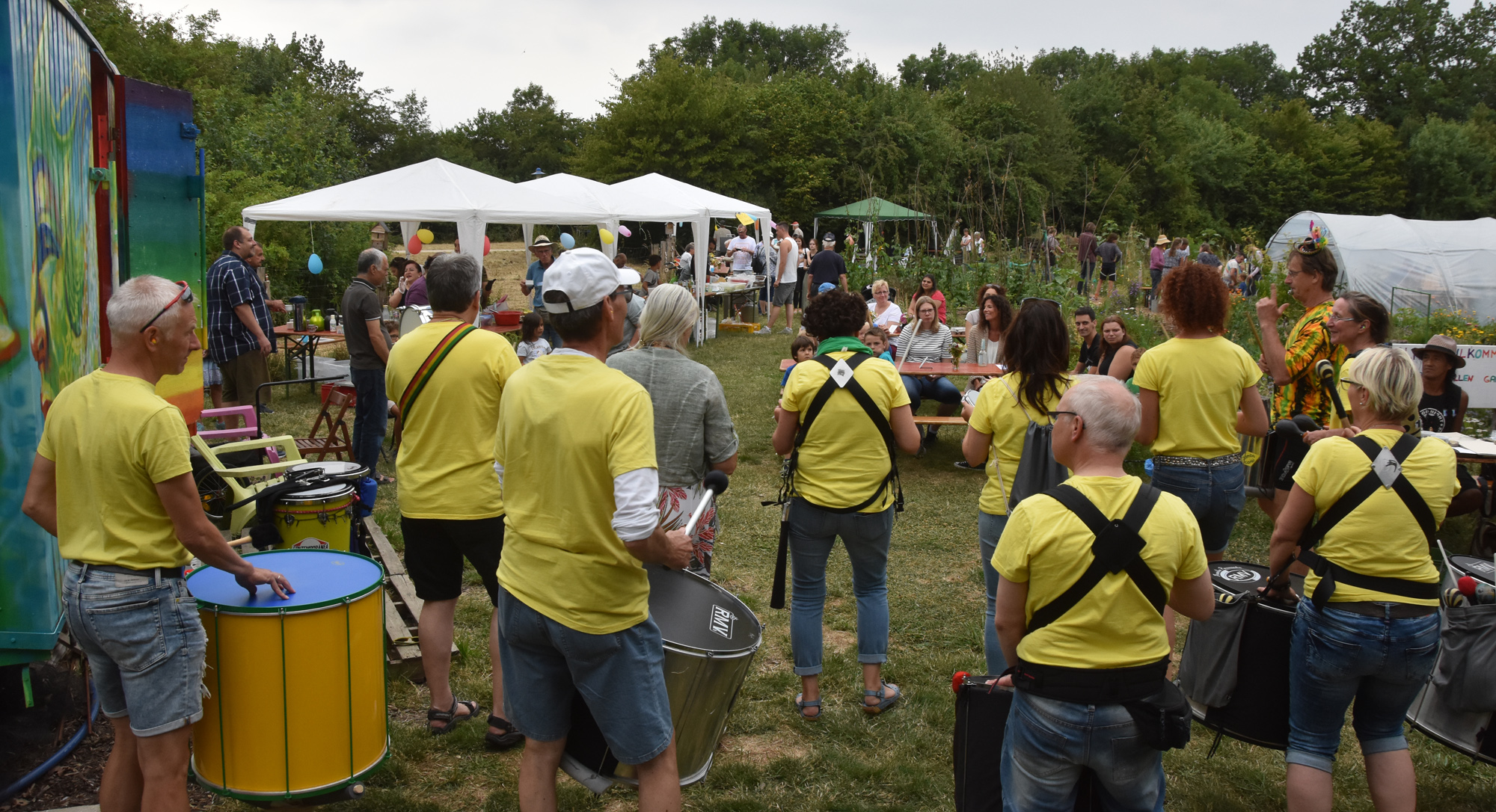 Bereits zum dritten Male haben wir im Interkulturellen Garten Neubeckum ein Sommerfest gefeiert. Bei ausgelassener Stimmung konnten die Besucher den Garten erkunden, syrische Spezialitäten & leckerste Kuchen genießen, bei brasilianischen Rhythmen von Sambacana die Hüften schwingen, sich vom Künstler Jorge Hidalgo portraitieren lassen, Seetballs kneten, oder beim Frage- und Antworträtsel rund um den Garten ihr Wissen testen. Die Kinder haben einen Schatz gesucht und sich beim Sackhüpfen und Seilchenspringen ausgetobt.