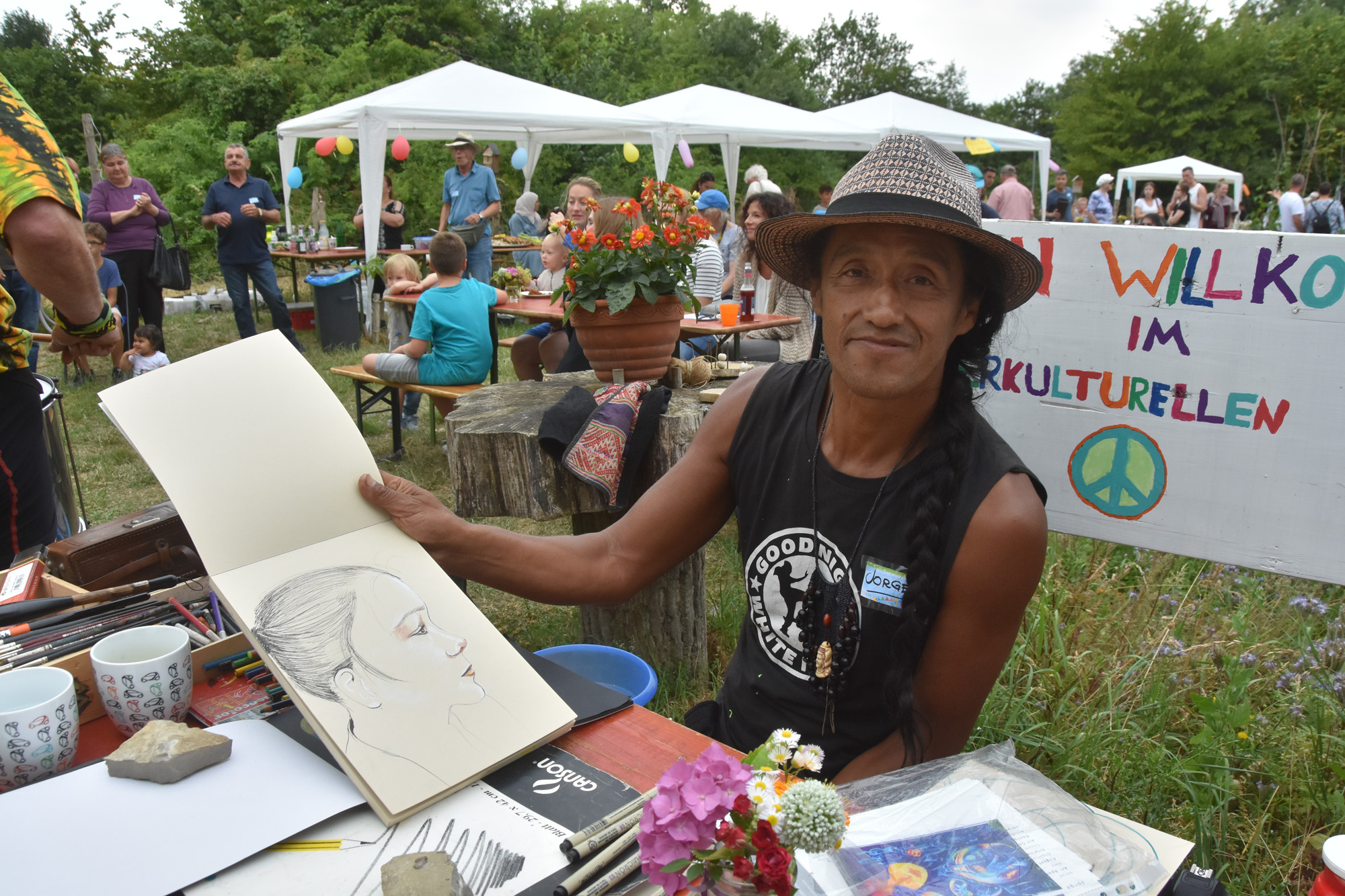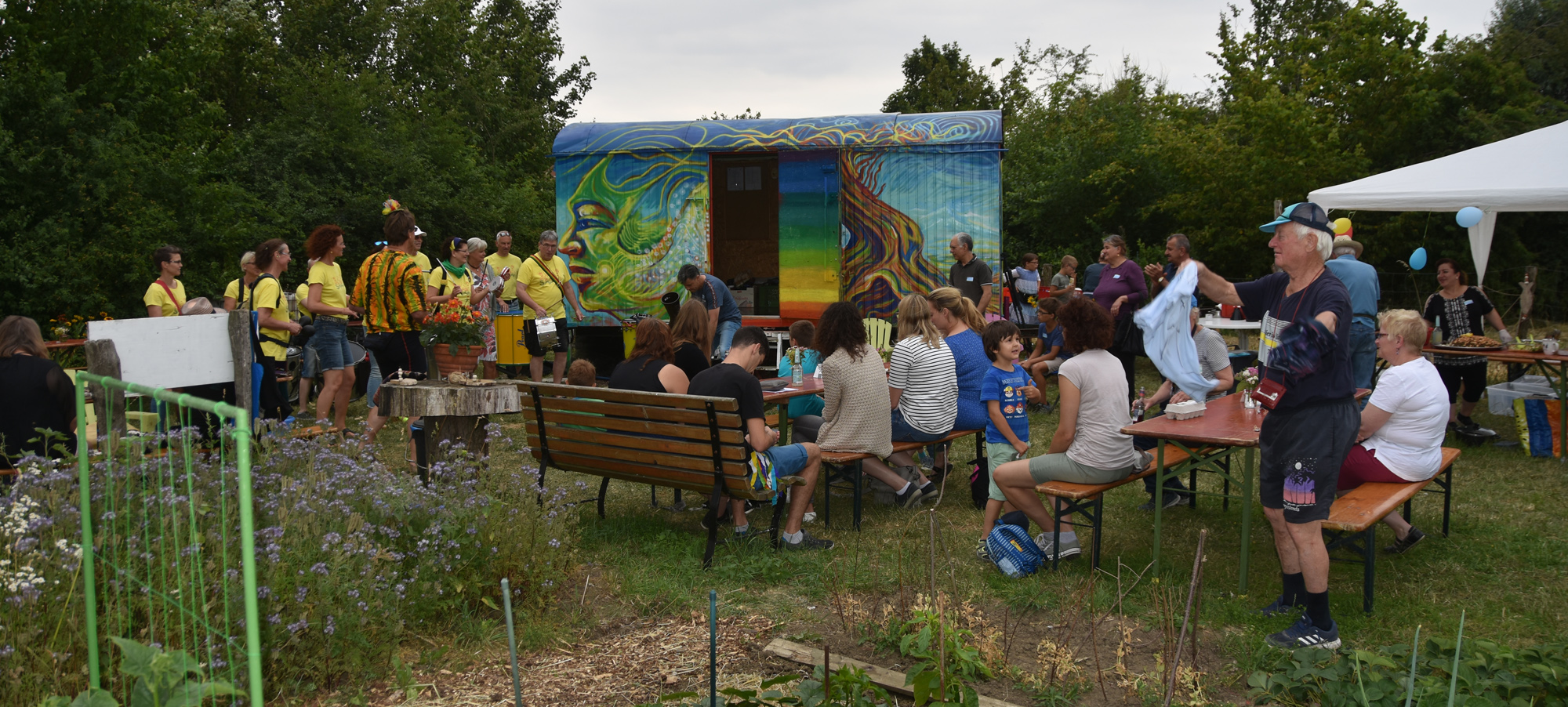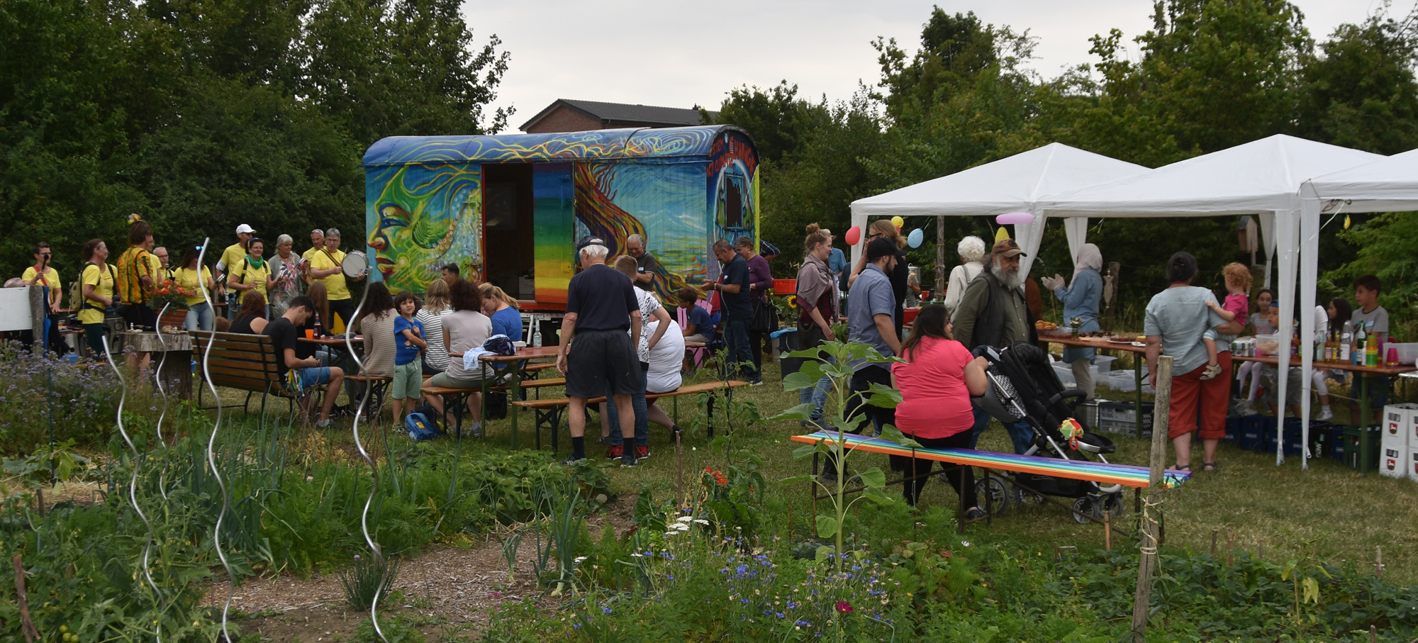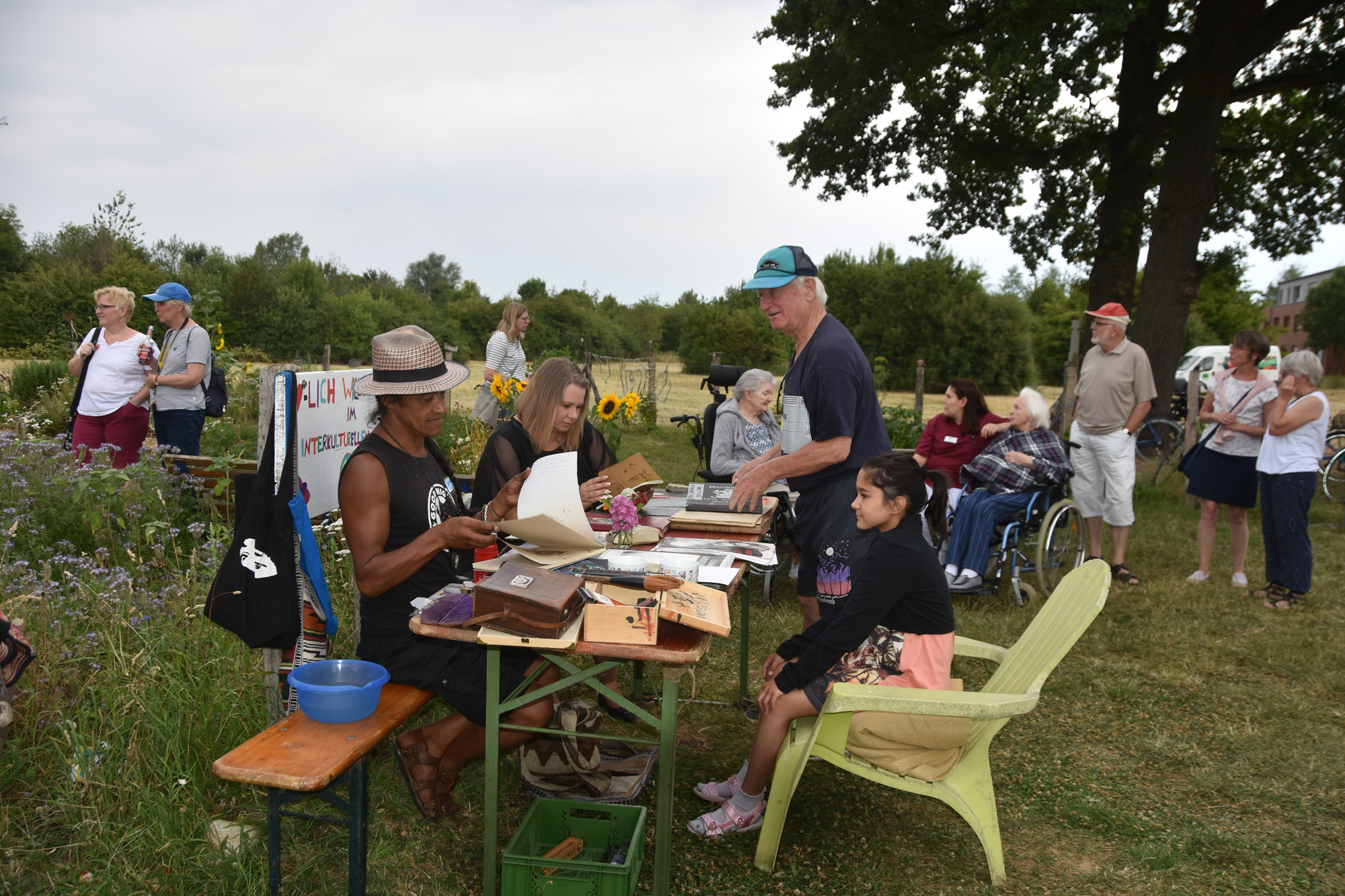 Bereits zum dritten Male haben wir im Interkulturellen Garten Neubeckum ein Sommerfest gefeiert. Bei ausgelassener Stimmung konnten die Besucher den Garten erkunden, syrische Spezialitäten & leckerste Kuchen genießen, bei brasilianischen Rhythmen von Sambacana die Hüften schwingen, sich vom Künstler Jorge Hidalgo portraitieren lassen, Seetballs kneten, oder beim Frage- und Antworträtsel rund um den Garten ihr Wissen testen. Die Kinder haben einen Schatz gesucht und sich beim Sackhüpfen und Seilchenspringen ausgetobt.