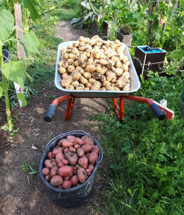 Zur Zeit haben die Gärtnerinnen & Gärtner des Interkulturellen Gartens in Neubeckum einiges zu ernten. Aus dem Gemeinschaftsbeet wurden jetzt die Kartoffeln ausgemacht, im Gewächshaus reifen die Tomaten prächtig heran.