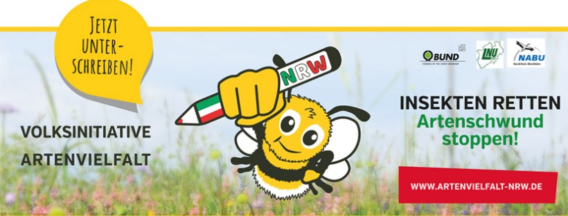 Gemeinsam mit vielen Unterstützer*innen setzt sich die Volksinitiative Artenvielfalt, getragen von den NRW Landesverbänden Bund für Umwelt und Naturschutz Deutschland (BUND), Landesgesmeinschaft Naturschutz und Umwelt (LNU) und Naturschutzbund Deutschland (NABU), dafür ein, dass Artenvielfalt und Naturschutz auf die politische Agenda gesetzt werden.