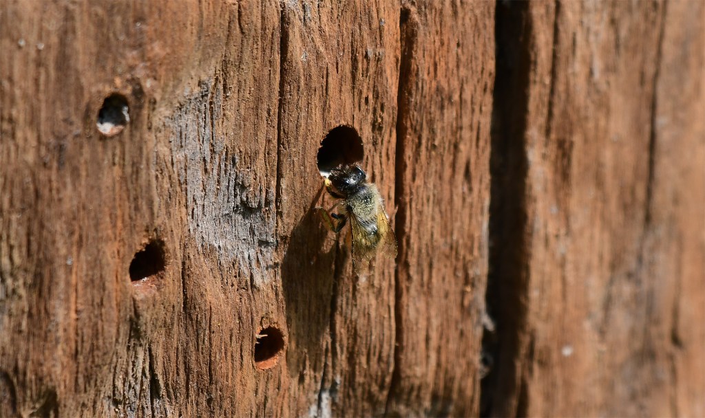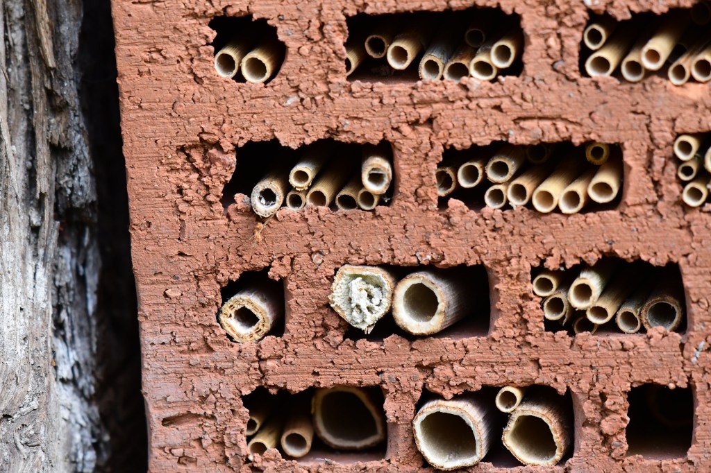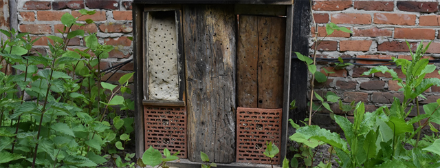 Tom, Auszubildender auf dem Laakenhof, hat in den letzten Wochen ein Insektenhotel aus verschiedenen Materialien zusammengestellt, und jetzt auf dem Laakenhof aufgestellt. Zahlreiche Eingänge wurden bereits von verschiedenen Insektenarten belegt, ein äußerst filigranes Bauwerk hat die Gemeine Schornsteinwespe aus Lehm gebaut, einzigartig in ihrer Gattung.