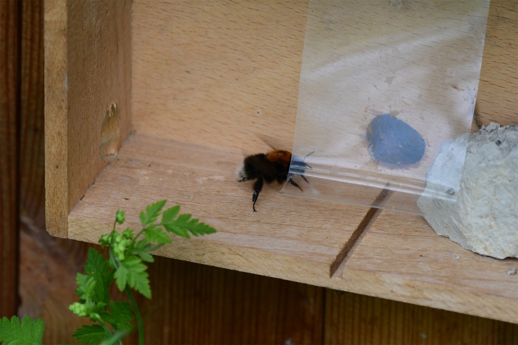 Martha hat bereits im letzten Jahr einige Hummelkisten gebaut, technisch verfeinert, wurden die Kisten in diesem Jahr von der Baum,- und Erdhummel angenommen. Die Kisten befinden sich in der Nähe der Foliengewächshäuser, so leisten die Hummeln und Insekten wertvolle Arbeit beim Bestäuben der verschiedenen Gemüsekulturen.