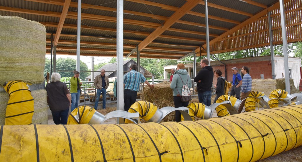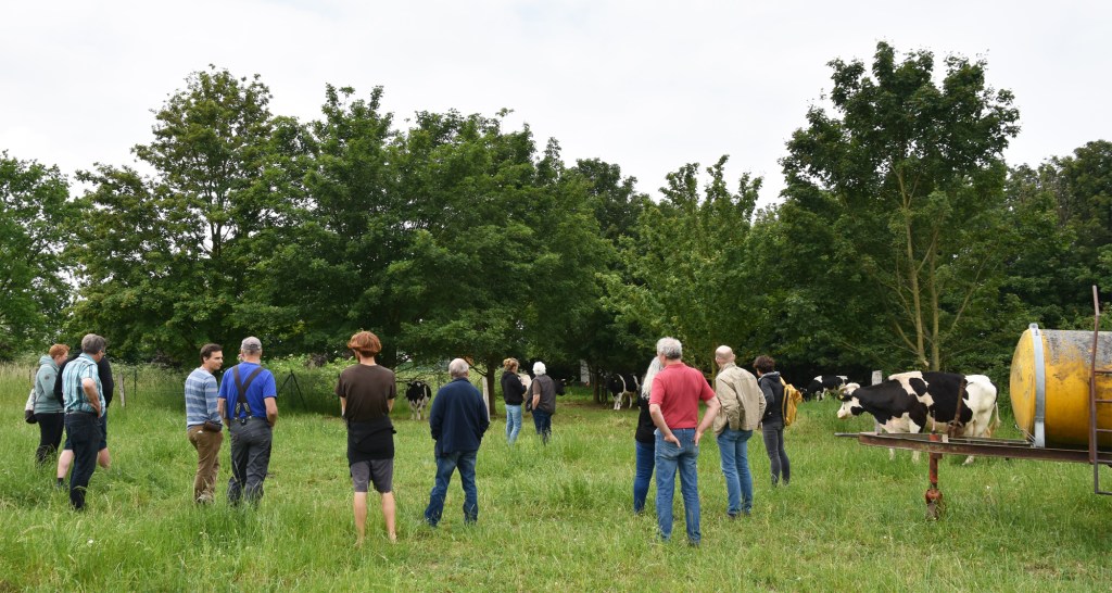 Nach einer gemütlichen Mittagspause sprach Hans-Christoph Vahle über die Vorzüge von artenreichem Grünland und wie es sich auf dem Betrieb etablieren lässt. Dabei wurde deutlich, dass ein wirklich artenreiches Grünland zwar immer mit einer Reduzierung der Futterqualität und des Ertrags einhergeht, dass es aber gleichzeitig durch die Vielzahl der Kräuter gesundheitlich wertvolle Eigenschaften für die Rinder hat, und daher eine gute Ergänzung zur normalen leistungsorientierten Futterration ist. So können einzelne Flächen, die mit bestimmten artenreichen Mischungen eingesät und nach einem definierten Schema bewirtschaftet werden, einen echten Mehrwert sowohl für die Fütterung der Rinder als auch für den Naturschutz und das Landschaftsbild bieten. Bei einer anschließenden Grünlandbegehung wurde sich weiter zu dem Thema ausgetauscht.