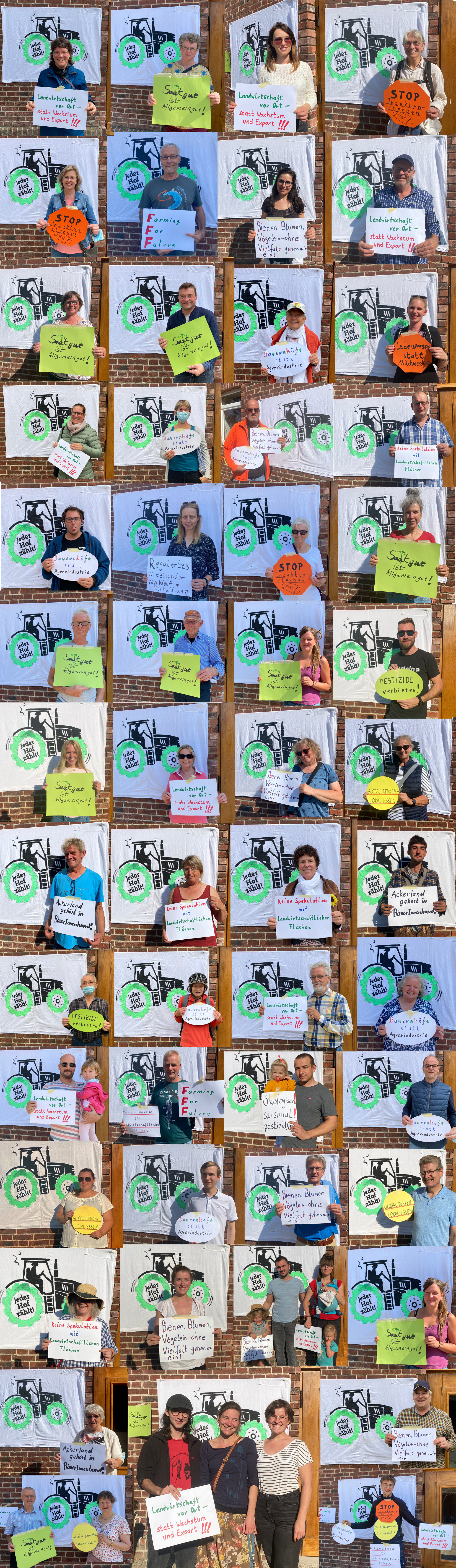 Außerdem beteiligten wir uns an der AbL Aktion (Arbeitsgemeinschaft bäuerliche Landwirtschaft e.V.) „Jeder Hof zählt”. Dabei fordert die AbL alle demokratischen Parteien nach der Bundestagswahl dazu auf, angesichts der großen wirtschaftlichen, klimatischen, ökologischen, ethischen und sozialen Herausforderungen, die Umsetzung dringend notwendiger, wirksamer Maßnahmen in der Agrarpolitik anzugehen.