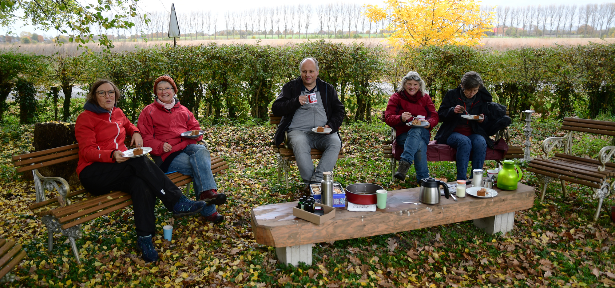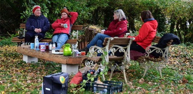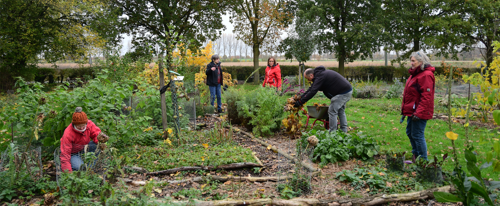 Laub harken, zusammen mit zerkleinerten, verblühten Pflanzen als Mulchmaterial nutzen, Wege von Beikräutern freimachen, bei Kaffee & Kuchen nochmals über die Aktivitäten des abgelaufenen Jahres resümieren, all das hat die Permakultur Waldgarten Gruppe zusammen mit Besuchern beim letzten Treffen im diesem Jahr gemeinsam genossen.