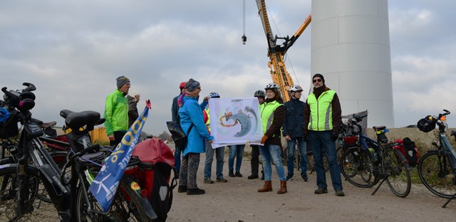 Zusammen mit dem Solarenergie Förderverein – Infostelle Ost-Münsterland (SFV) haben einige Mitglieder vom Verein anders ackern e.V. eine Radtour zum Scheringer Feld zwischen Enniger und Vorhelm unternommen, um den im Bau befindlichen Windpark der Drehstrom Ahlen eG zu besichtigen. Die Fundamente der zwei geplanten Windräder der Größenklasse 4,5 MW sind bereits gegossen, jetzt steht der Turmbau an.