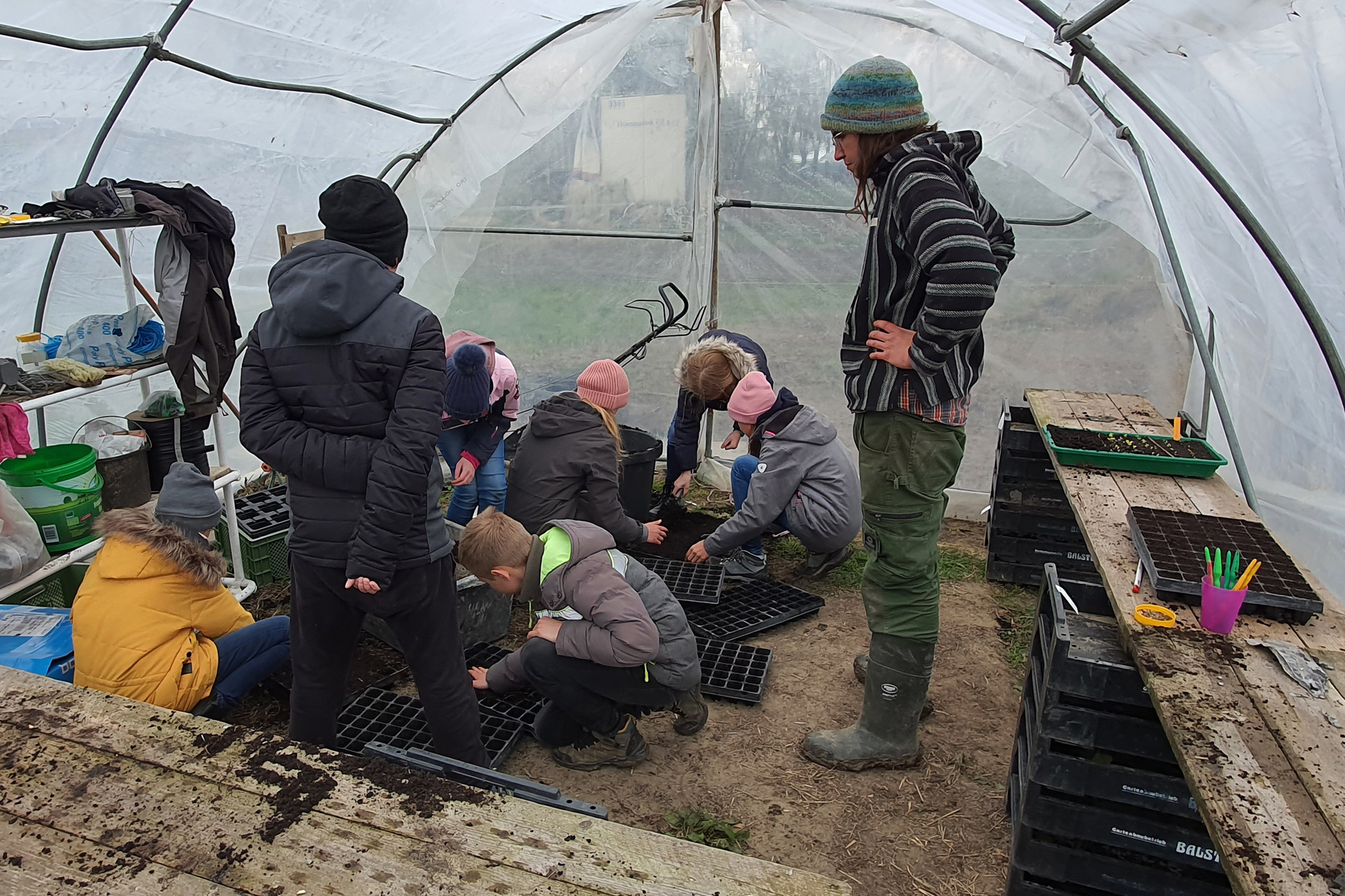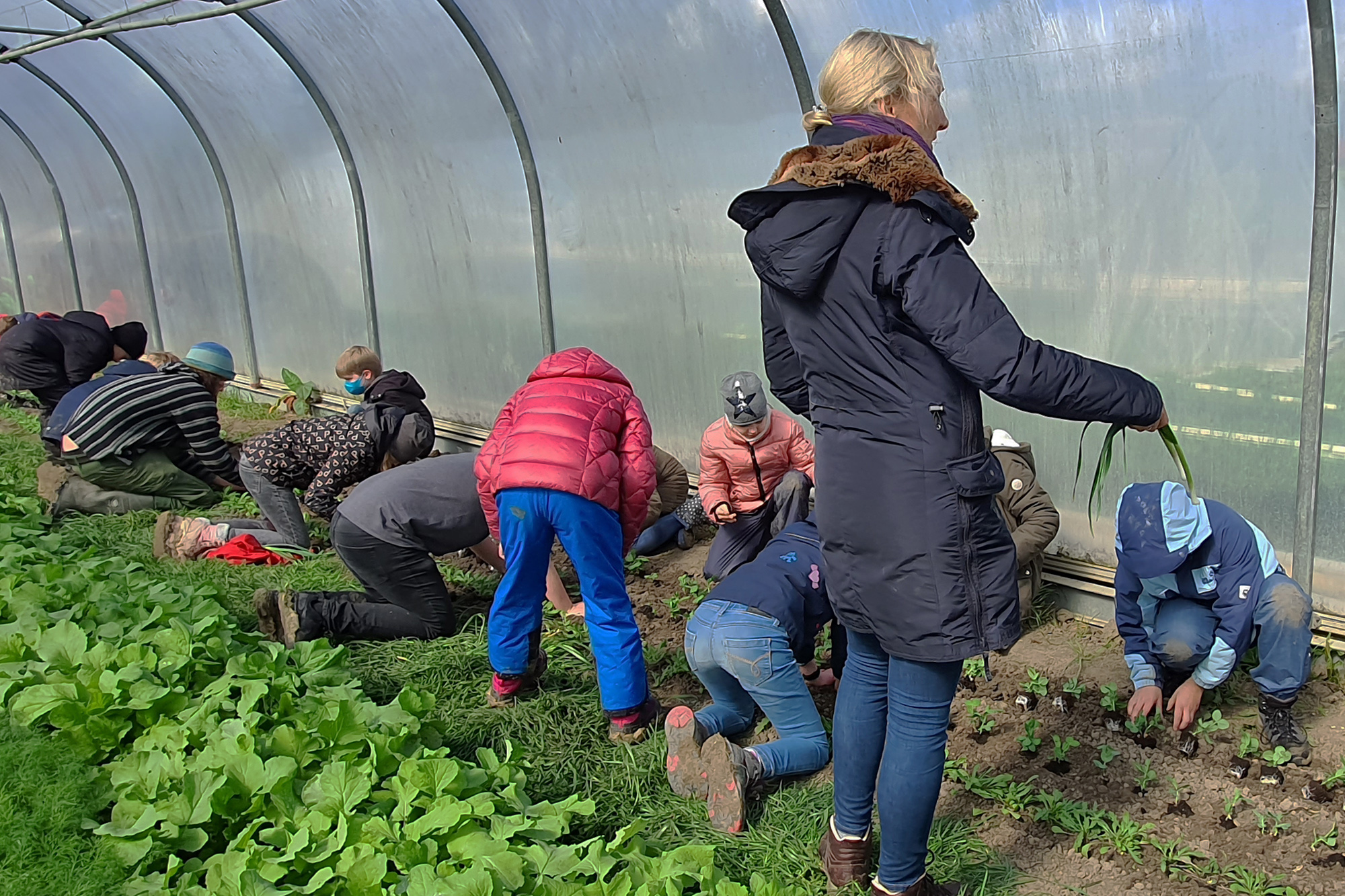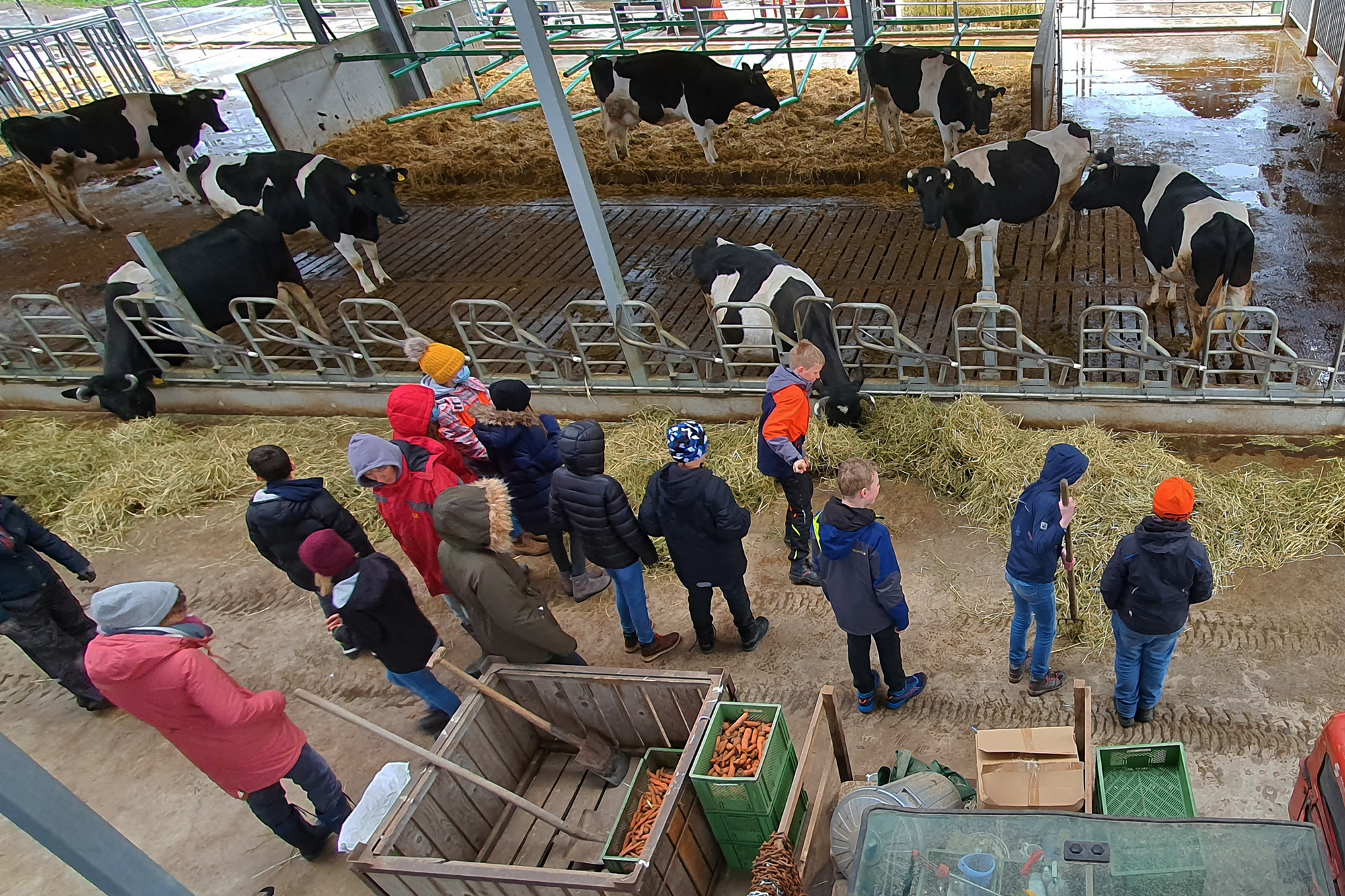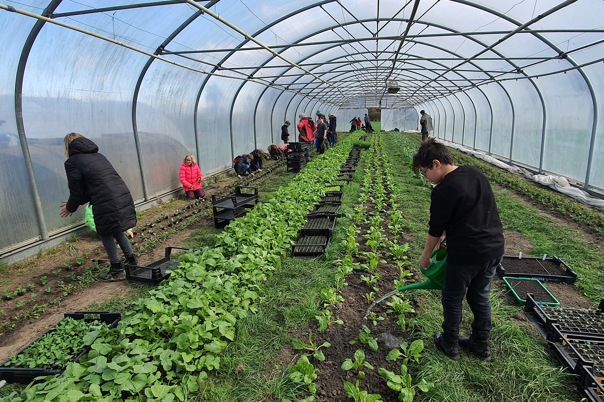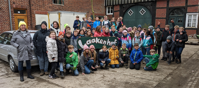 4 Schulklassen mit Fünftklässler/-innen des Thomas-Morus-Gymnasiums aus Oelde haben an zwei Tagen den Laakenhof besucht, und die Bereiche Milchvieh-Wirtschaft und Gemüsebau kennengelernt, und dort auch tatkräftig mit angepackt. Kühe streicheln und füttern, Jungpflanzen pikieren, sowie Pflanzarbeiten im Gewächshaus haben die Kids mit viel Spaß und Engagement durchgeführt. Der Bauernhofbesuch gehört zum Unterrichtsvorhaben Nutztiere und Nutzpflanzen, und ist ein fächerübergreifendes Angebot (Biologie und Erdkunde).