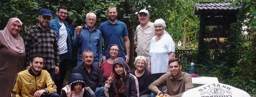 Einige Bäume auf der Apfelwiese, die von den Aktiven des Interkulturellen Gartens Neubeckum gepflegt und genutzt werden, sind noch aus der Zeit des Schulbaus von 1908. Jetzt hat eine Begehung mit Herrn Firzlaff von der Stadt Beckum stattgefunden, die weitere Nutzung durch den Verein anders ackern e.V. soll in einem Gestattungsvertrag festgelegt werden.