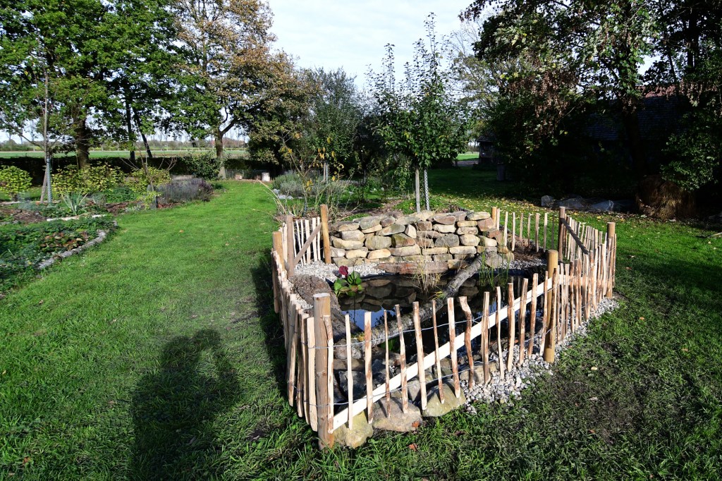 Der Teich liegt an einem sonnigen Platz, und wird sich wohl im Laufe der Zeit zu einem kleinen, ökologisch wertvollem Biotop entwickeln. An seinen Rändern gedeihen Wasser- und Sumpfpflanzen, er dient Vögeln und Kleintieren als Tränke, bietet an heißen Tagen einen dringend benötigten Hitzeausgleich und kann Wohnort für Wasserkäfer, Libellen, Wasserschnecken und Frösche werden.