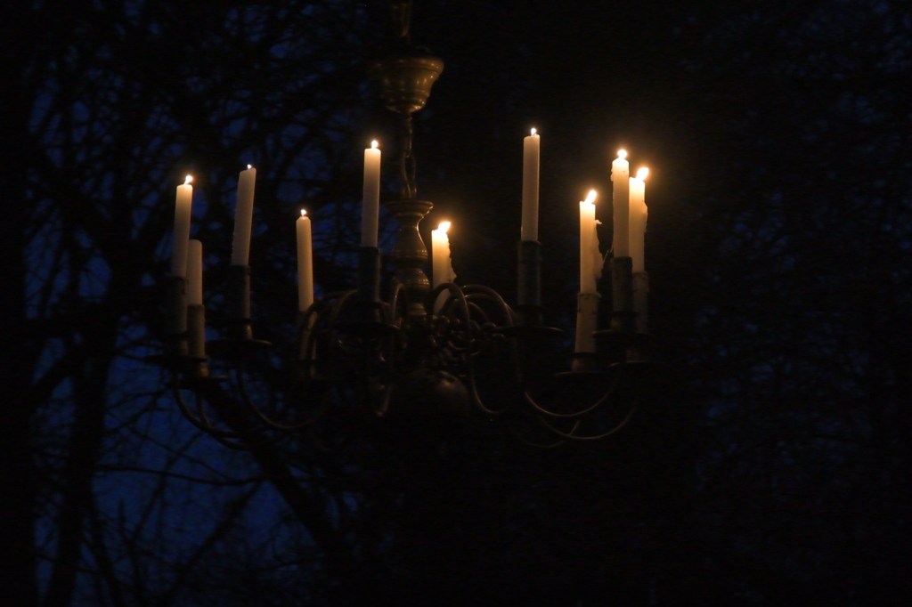 Bei Einbruch der Dunkelheit hat die Mantra-Gesangsgruppe, die sich zweiwöchentlich auf dem Laakenhof trifft, einige Mantra-Lieder zum Mitsingen angestimmt.