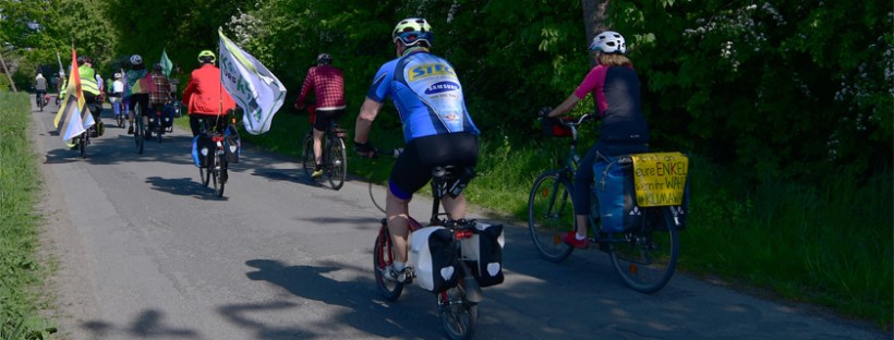 Schmückt eure Räder gerne mit Fahnen, damit wir unterwegs unsere Botschaft klar ersichtlich machen.