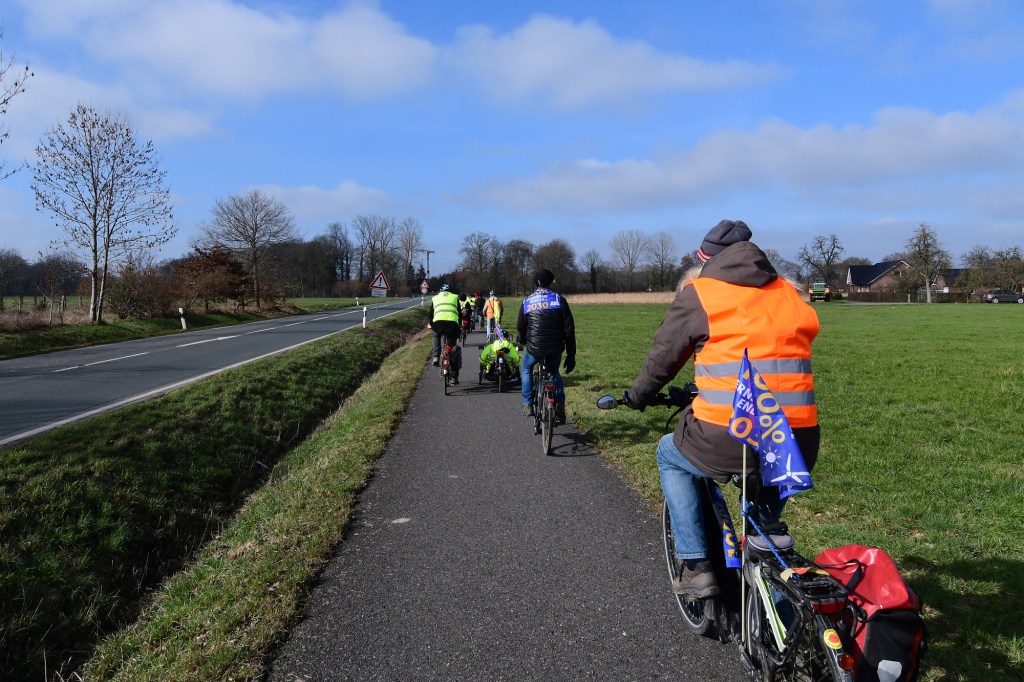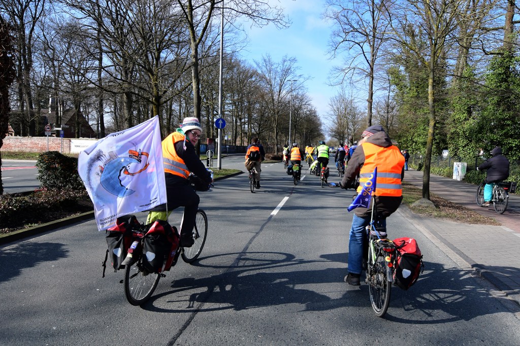 Eine, von der Aktionsgruppe Lützerath – Kreis Warendorf organisierte Fahrrad-Demo hat 20 Teilnehmer*innen zum Klima-Aktionstag nach Münster geführt, darunter auch Mitglieder vom Verein anders ackern e.V. Der Fahrrad-Korso wurde von der Polizei gesichert, und führte, zum Ärgernis mancher Autofahrer, überwiegen entlang der Hauptstraßen von Enniger über Sendenhorst und Albersloh nach Münster.