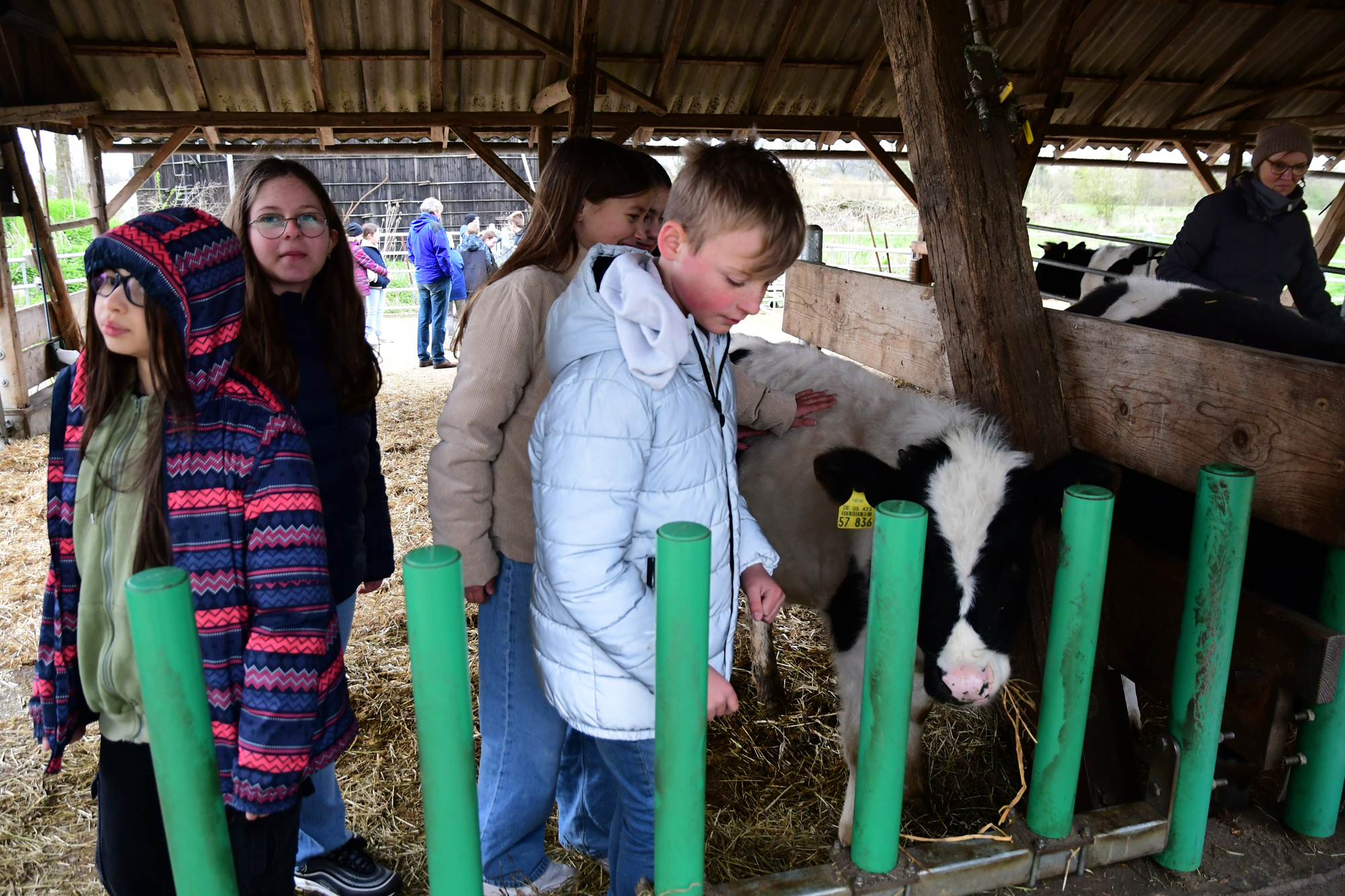 Die Bereiche Milchvieh-Wirtschaft und Gemüsebau wurden von jeweils 15 Schüler*innen im Rotationsverfahren kennengelernt, dort wurde auch tatkräftig mit angepackt. Kühe füttern und Kälbchen streicheln, Zwiebeln im Freiland stecken, Topinambur ausmachen, oder mit Monty spazieren gehen, die Kids haben sich mit viel Spaß und Engagement eingebracht.