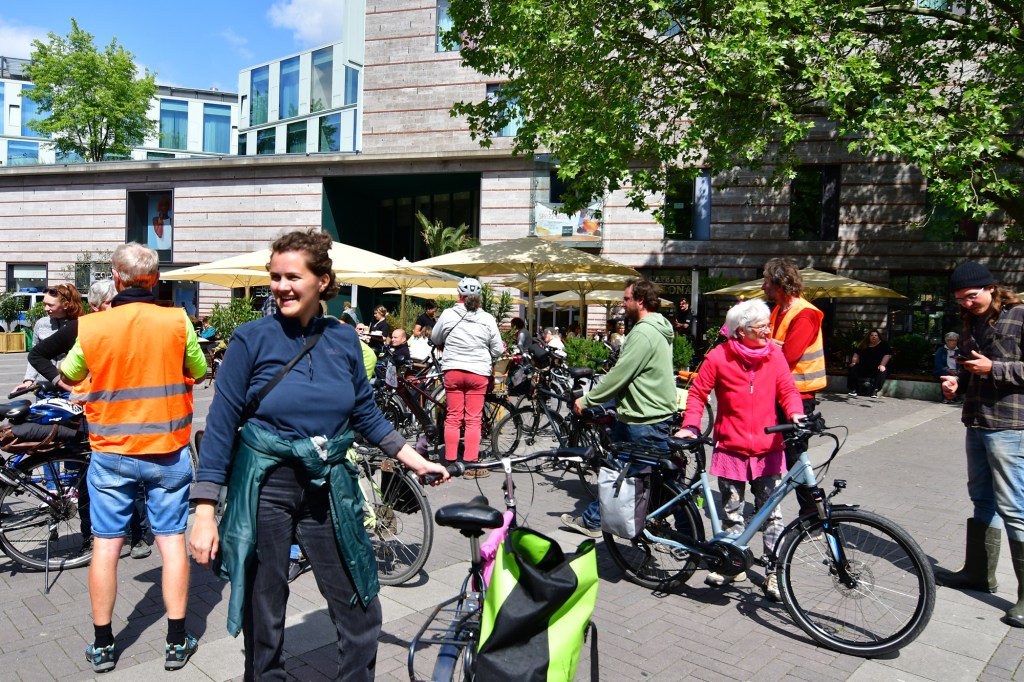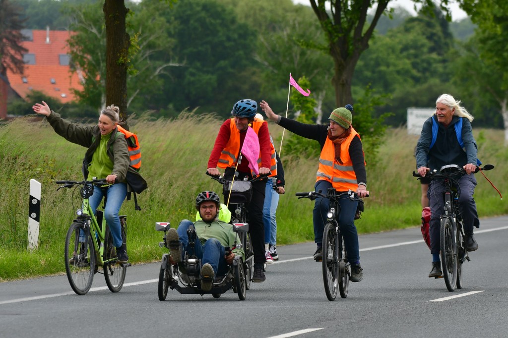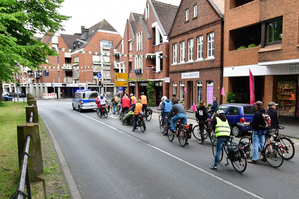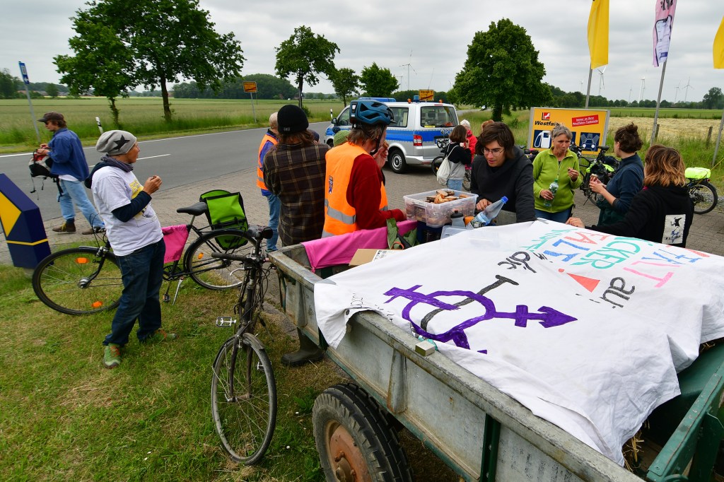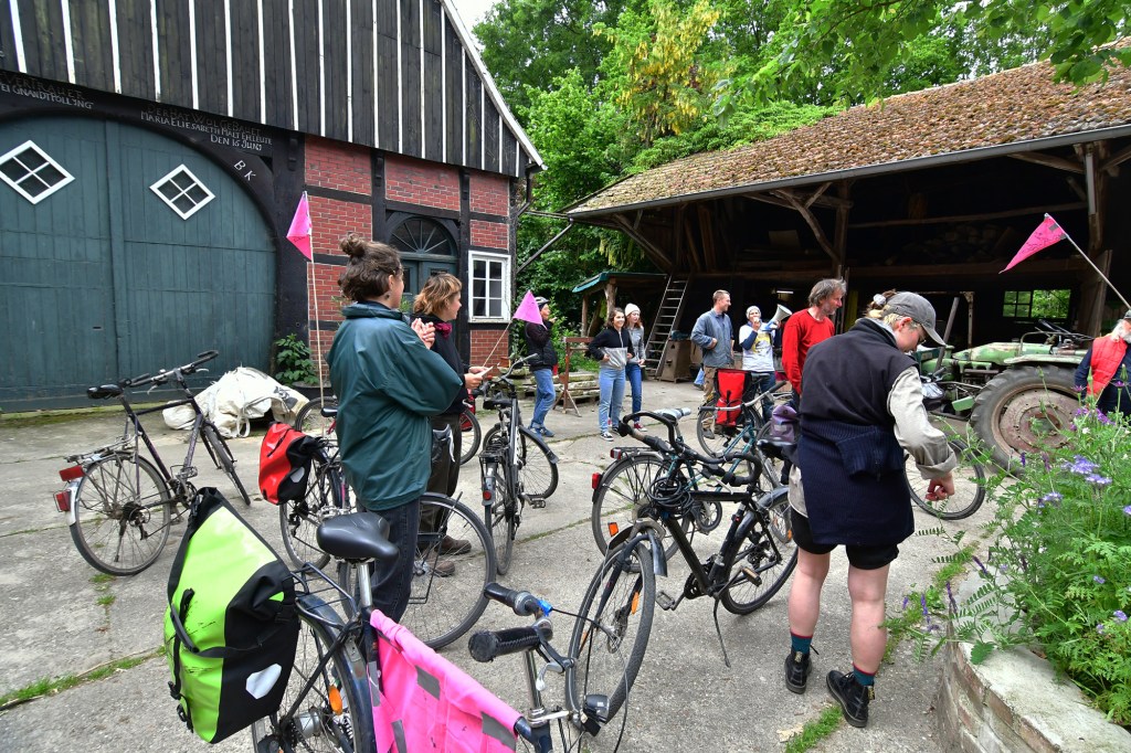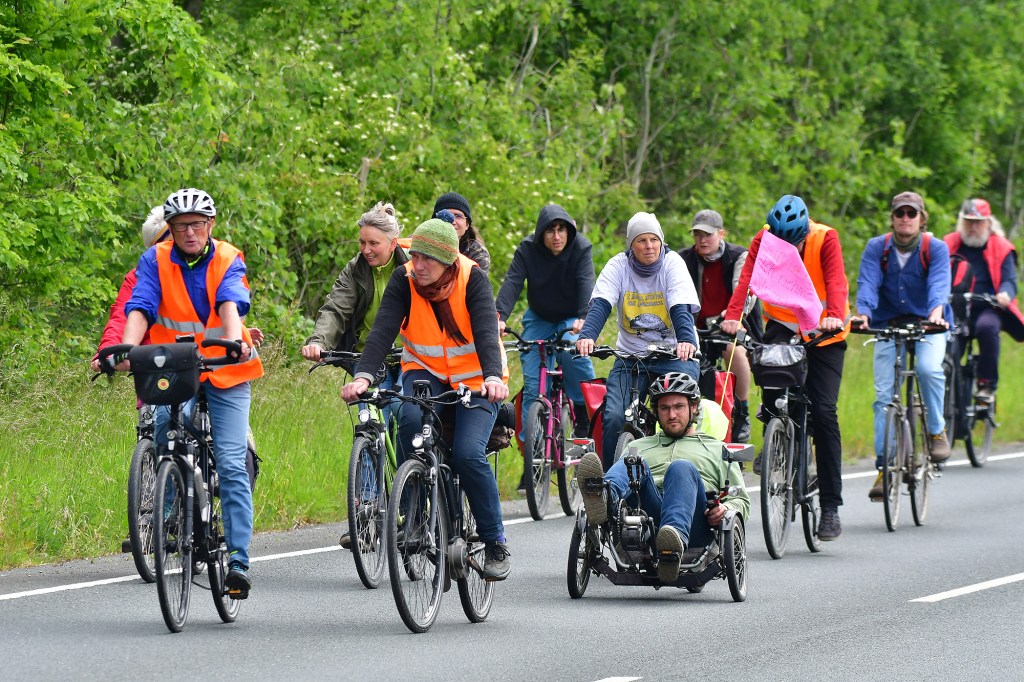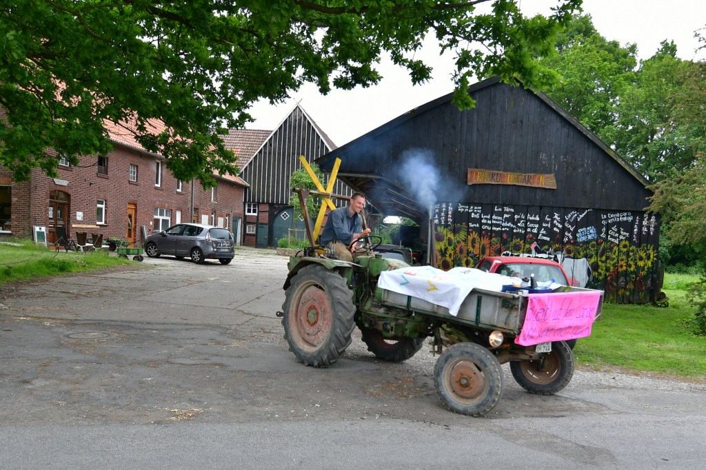Vom Laakenhof aus ist eine Gruppe von ca. 20 Personen mit dem Fahrrad und einem Trecker über Sendenhorst und Albersloh die 40 Kilometer bis nach Münster gefahren.