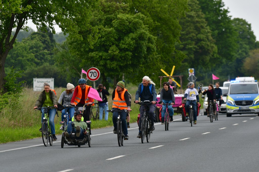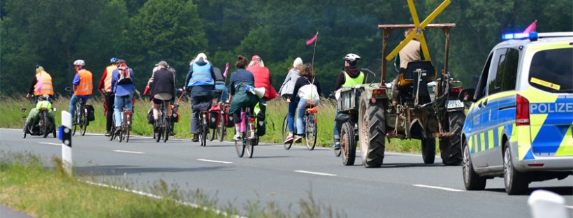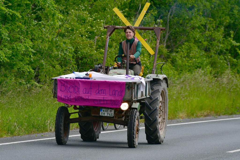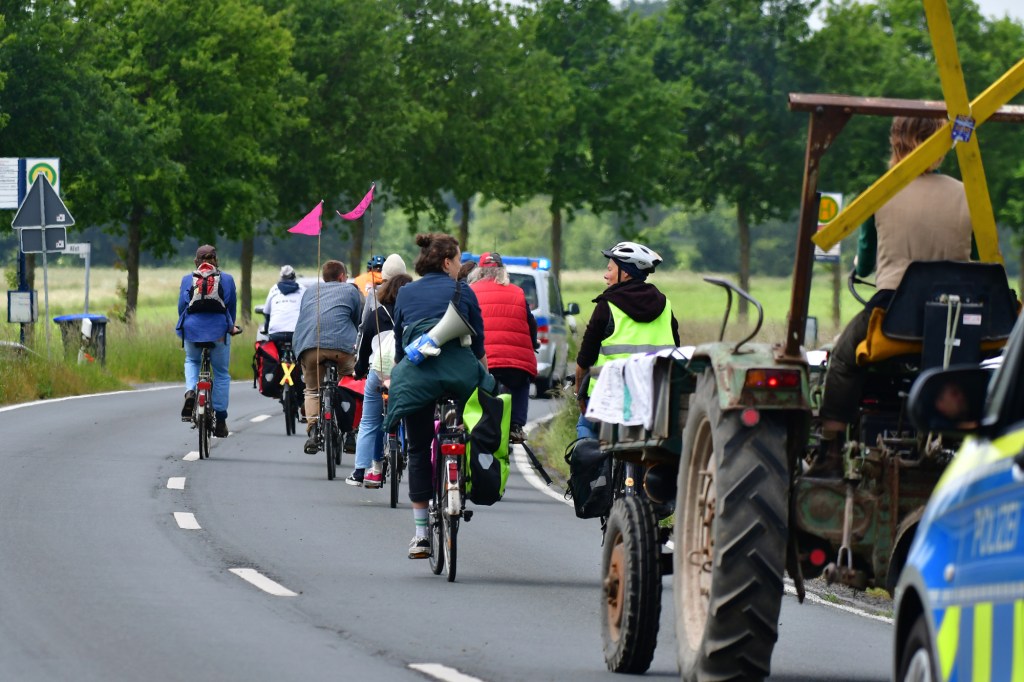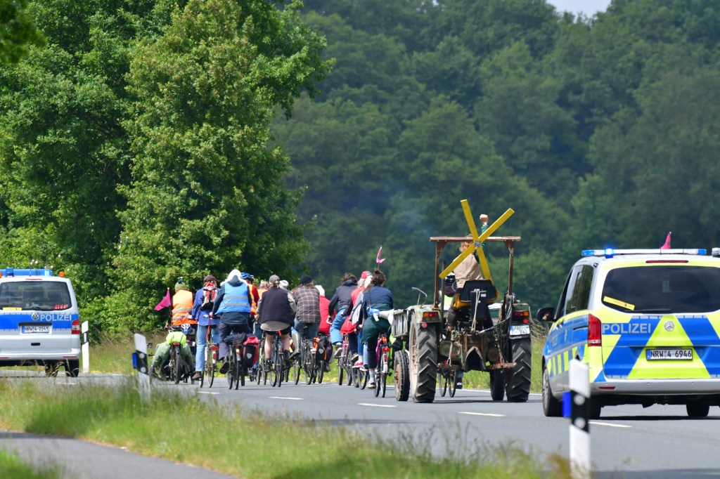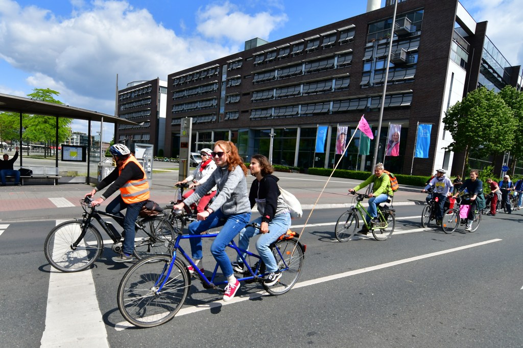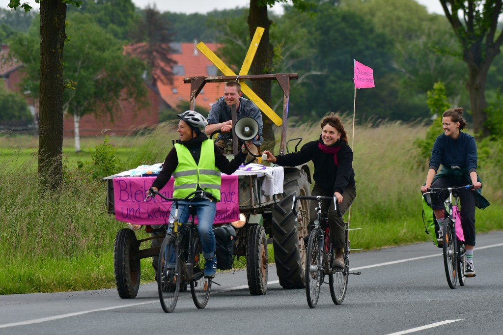 Vom Laakenhof aus ist eine Gruppe von ca. 20 Personen mit dem Fahrrad und einem Trecker über Sendenhorst und Albersloh die 40 Kilometer bis nach Münster gefahren.