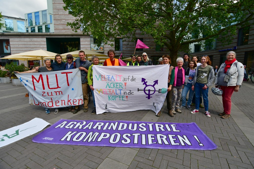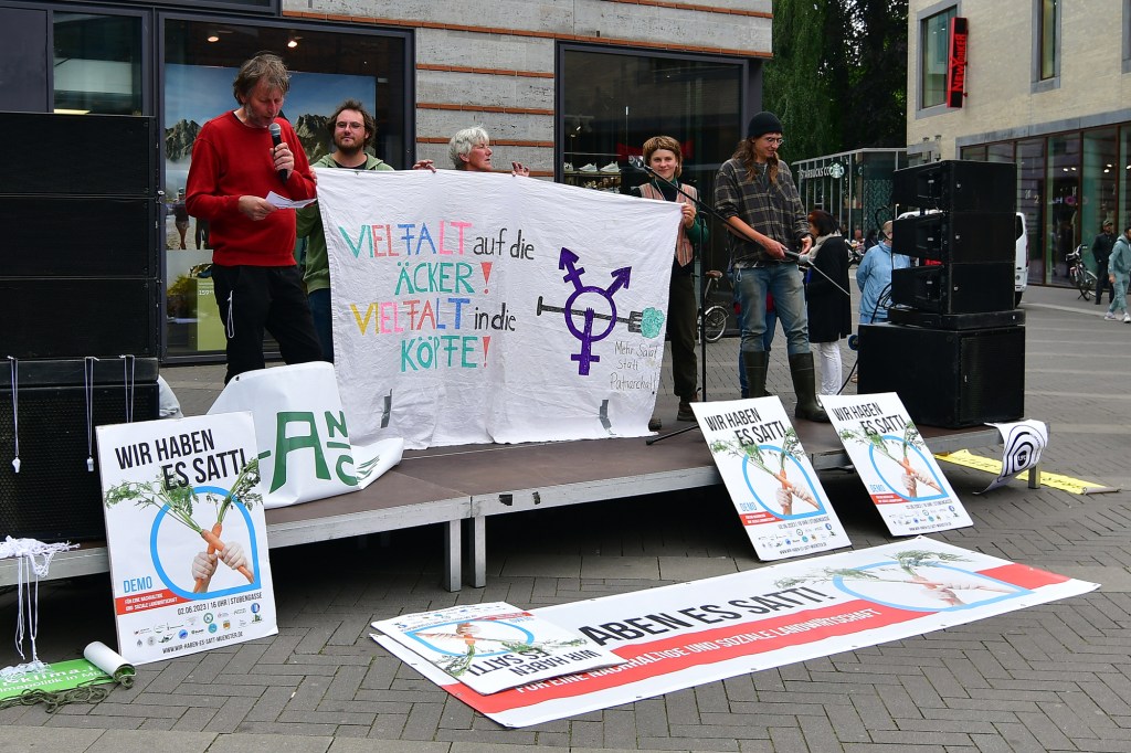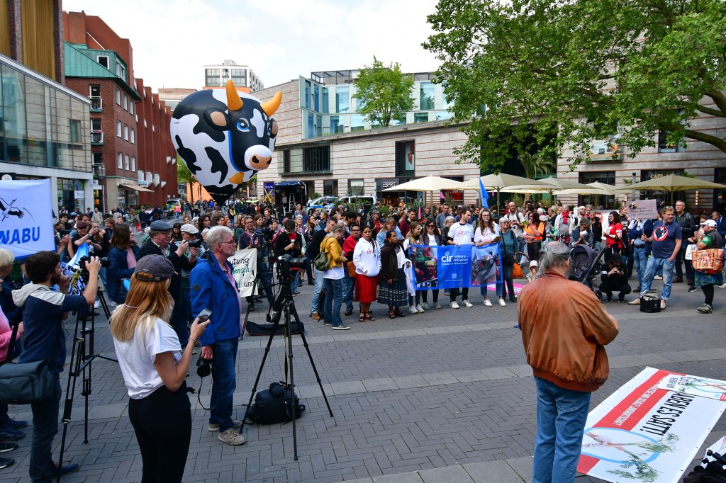 Am Freitag, den 02. Juni fand in Münster die erste, von mehreren Vereinen und Initiativen organisierte „Wir-haben-es-satt-Demo – Münsterland“ statt. Ihre Botschaft: Die Klimakrise ist kein Schicksal! Unser fleischlastiger Ernährungsstil trägt dazu bei, dass enorme Mengen von CO₂. Lachgas und Methan frei werden. Die Demonstration setzt sich aus diesem Grunde für eine Agrarwende ein, in der die ökologische, bäuerliche Landwirtschaft im Münsterland gestärkt wird und Tiere, Umwelt und letztendlich auch das Klima besser geschützt werden. Außerdem sollen faire Arbeitsbedingungen in der Landwirtschaft gewährleistet werden. Die gemeinsame Vision ist ein global gerechtes Ernährungssystem und die Abkehr vom vorherrschenden Agrobusiness, das von mächtigen Konzernen und dem schnellen Profit dominiert wird.