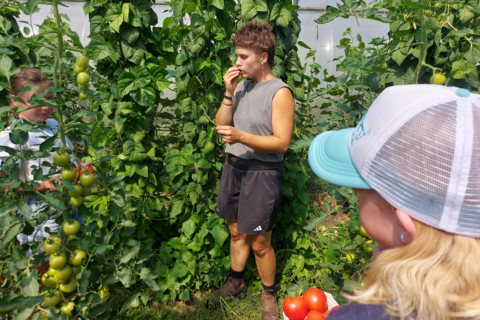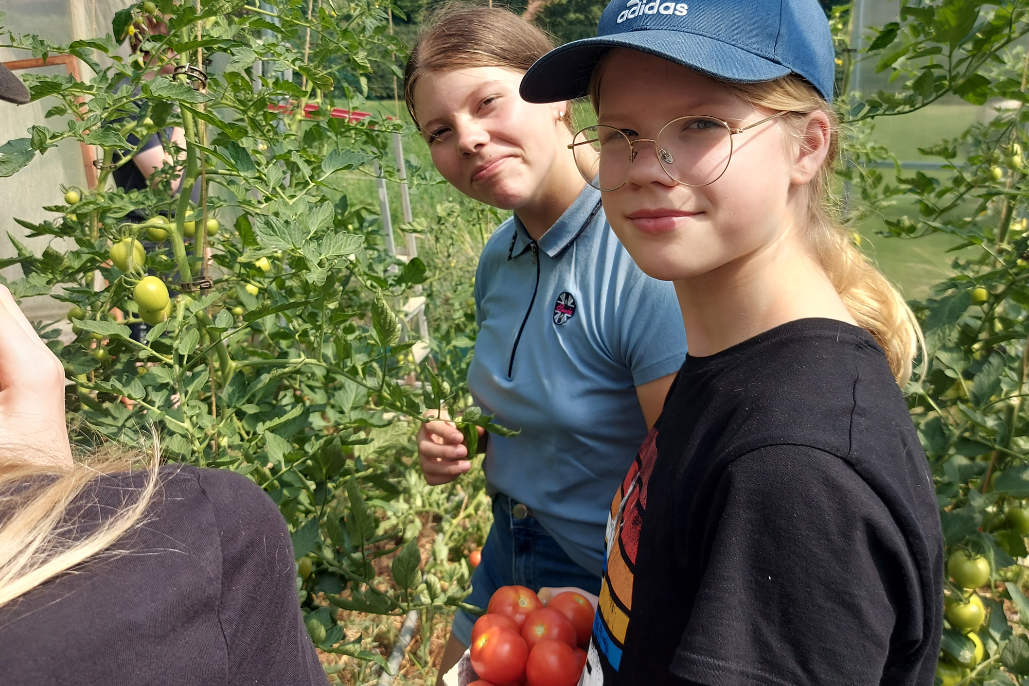 Die Jungen und Mädchen zwischen 10 und 12 Jahren haben mit großem Eifer auf dem Laakenhof Gemüseacker die Zutaten für ein kleines Sommermenue zusammen mit der Auszubildenden Friederike geerntet. Der Gemüseacker ist zurzeit reichlich gedeckt, sodass es neben Tomaten auch frischer Salat, Zucchini, Frühkartoffeln und frische Kräuter zu ernten waren.