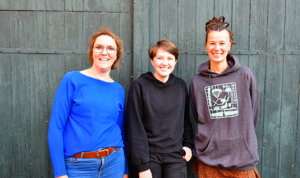Auf dem Foto sind Anja, Charlie und Lina zu sehen. Neben Hilde und Martha vom Laakenhof werden Anja und Lina Ansprechpartnerinnen für Charlie sein.