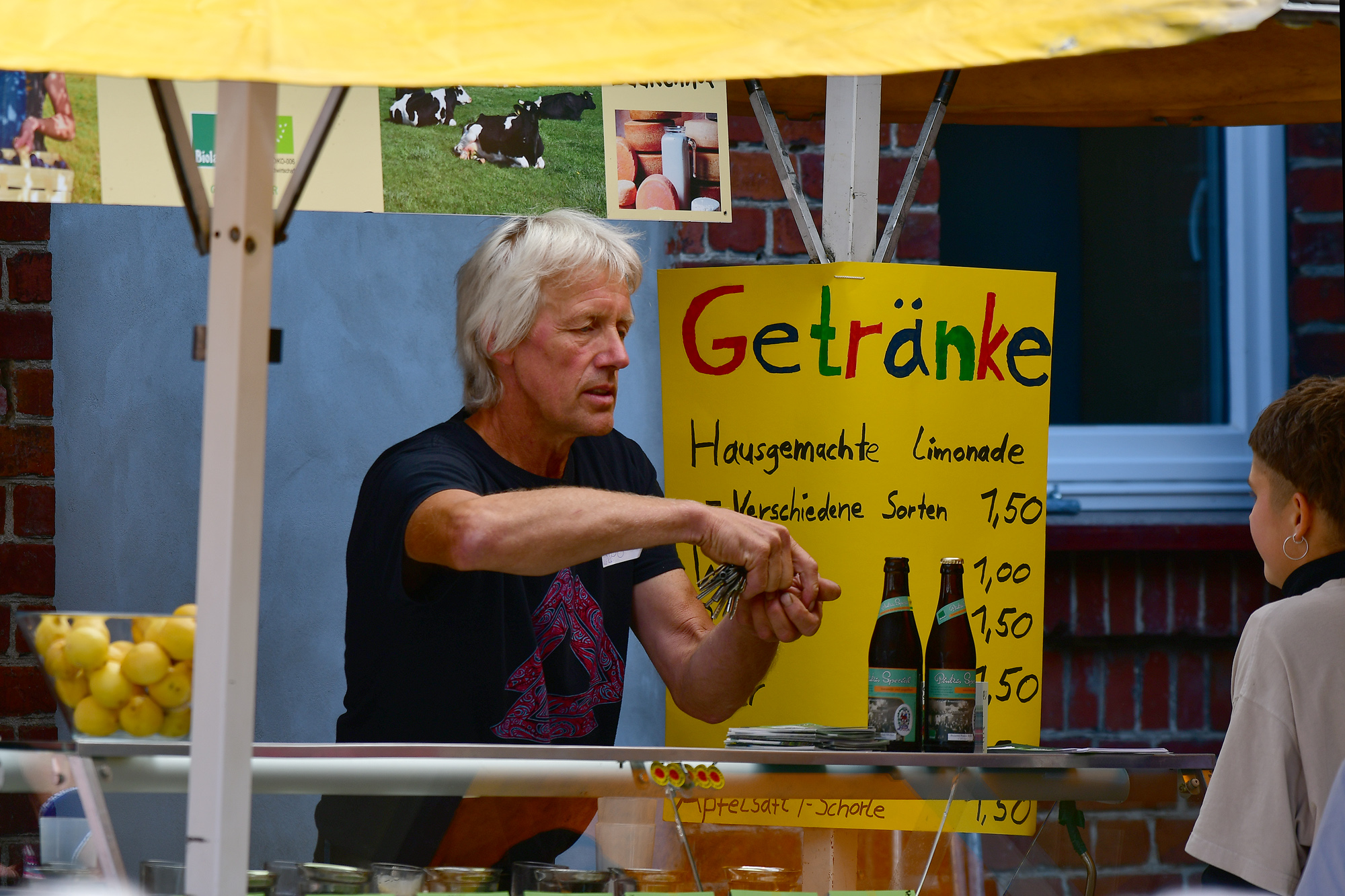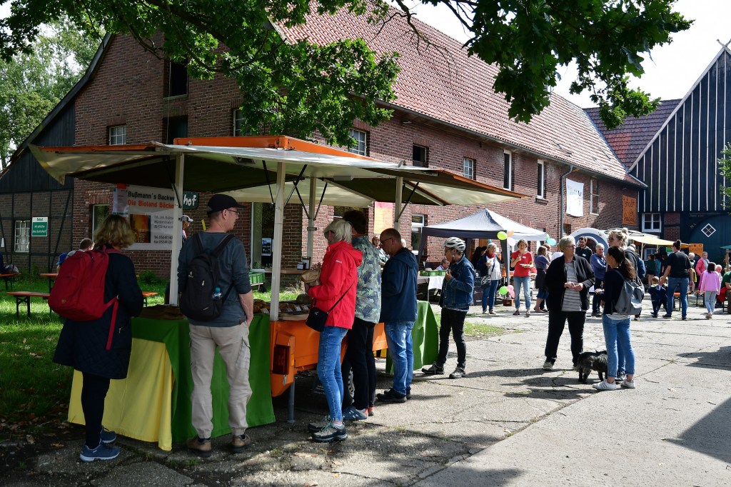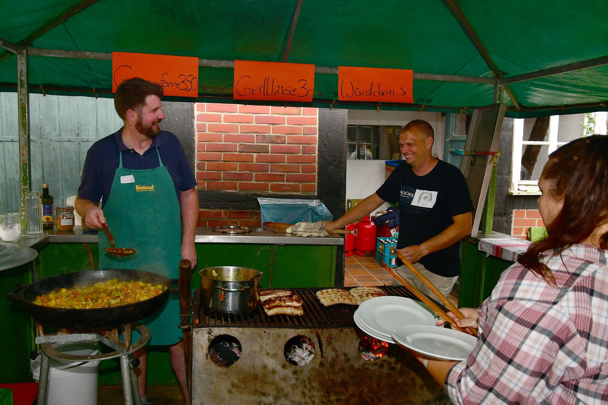 Ein Waffelstand von den Mitgliedern des Interkulturellen Gartens Neubeckum, Rundgänge durch den Permakultur Waldgarten und ein Blick in die neu eingerichtete Seminarküche, alles Projekte vom Verein anders ackern e.V., Strohburg mit Rollenbahn, Treckerrundfahrten, Messerschleifer und weitere Stände haben neben den kulinarischen Angeboten kaum etwas vermissen lassen.