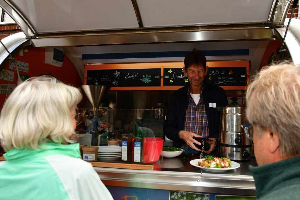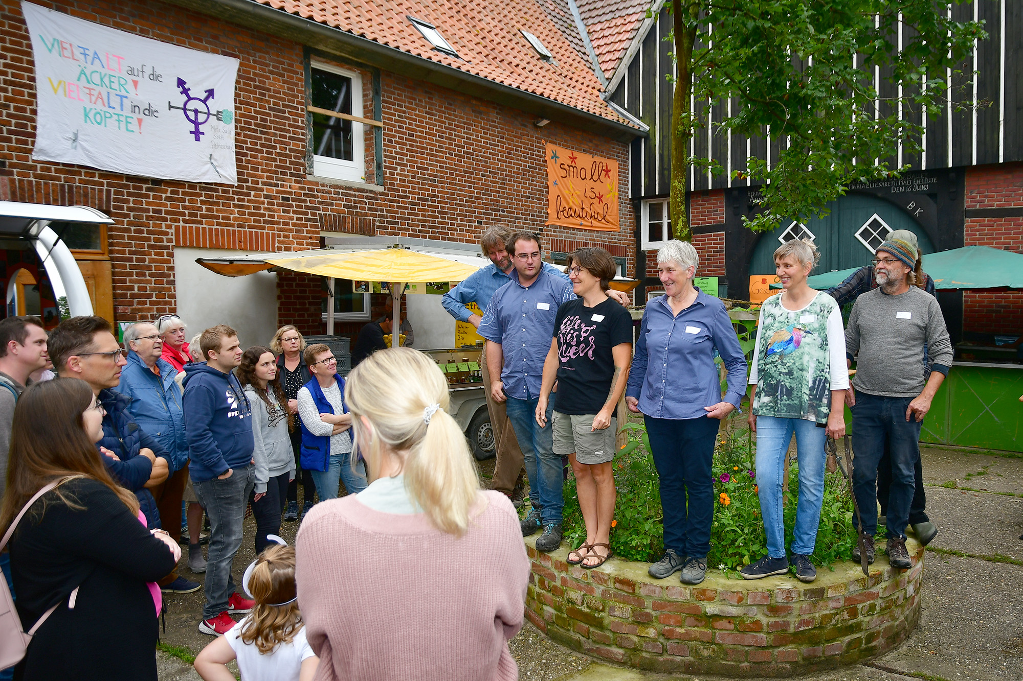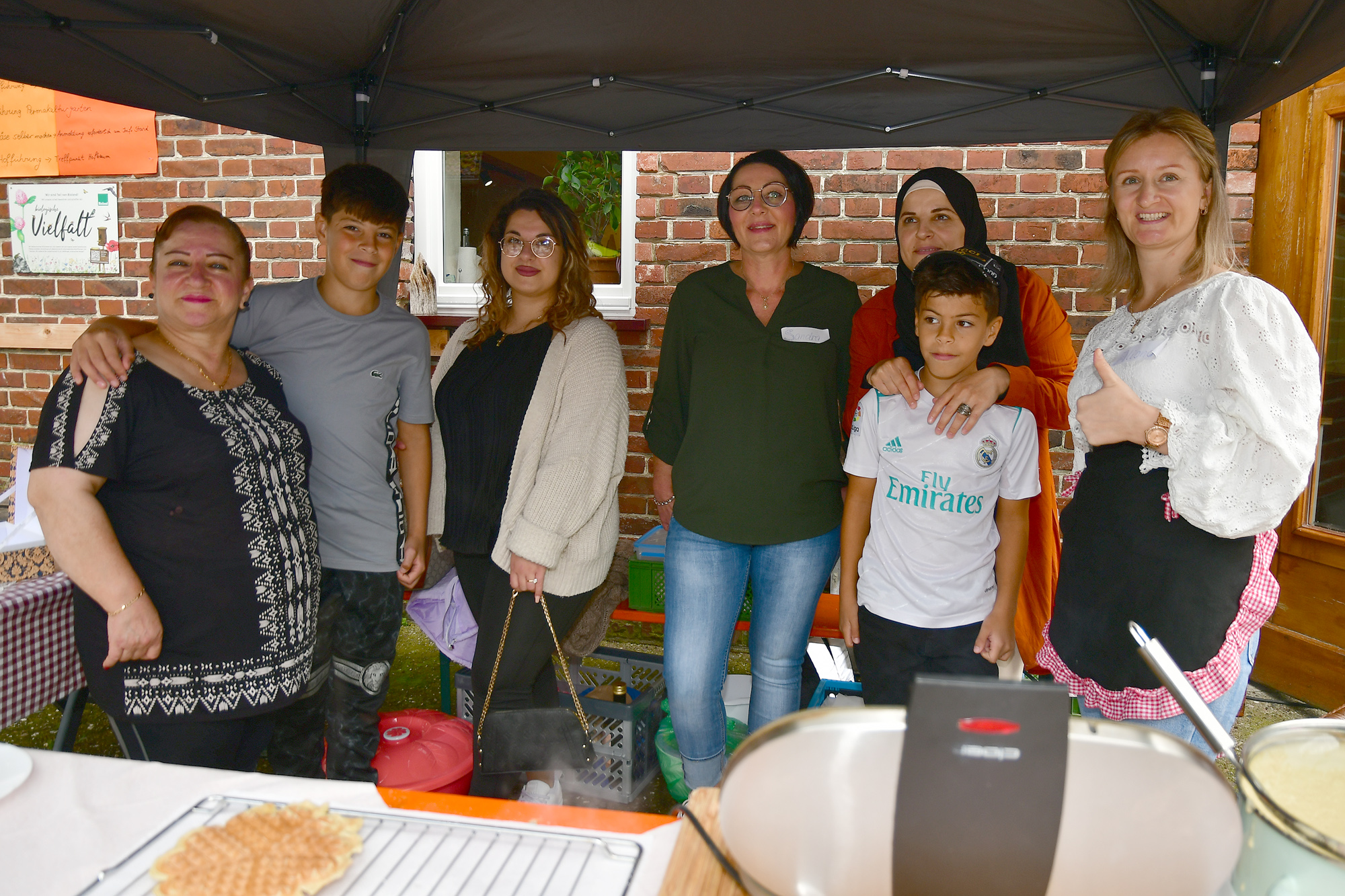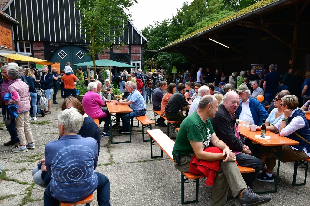 Ein Waffelstand von den Mitgliedern des Interkulturellen Gartens Neubeckum, Rundgänge durch den Permakultur Waldgarten und ein Blick in die neu eingerichtete Seminarküche, alles Projekte vom Verein anders ackern e.V., Strohburg mit Rollenbahn, Treckerrundfahrten, Messerschleifer und weitere Stände haben neben den kulinarischen Angeboten kaum etwas vermissen lassen.