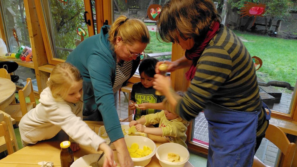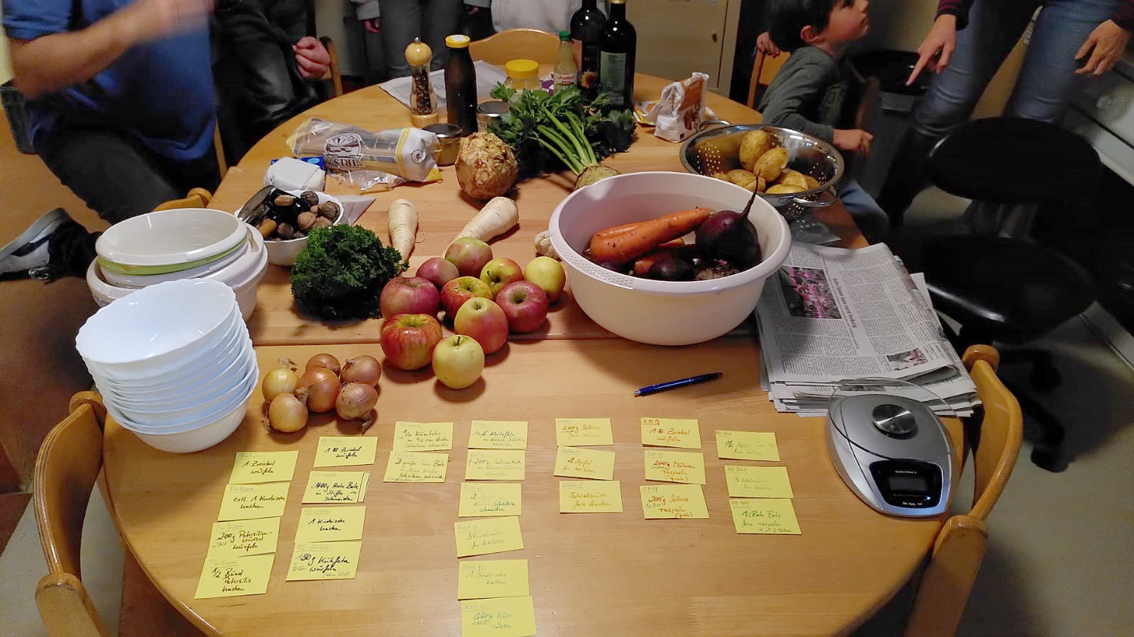 Um zu zeigen, wie vielfältig und lecker Wintergemüse vom Laakenhof ist (Tomaten und Paprika können auch mal Pause machen…), hat Natascha zusammen mit 4 Familien (6 Erwachsene und 7 Kinder) einige saisonale Gerichte zubereitet.