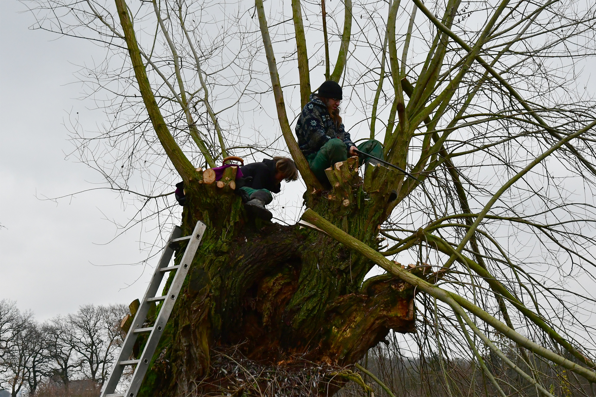 Im Rahmen einer Umweltschutzmaßnahme wurde kürzlich auf dem Laakenhof eine recht große Kopfweide geschneitelt, um so ihren unschätzbaren ökologischen Wert zu erhalten. Werden Kopfweiden nicht alle 4 – 5 Jahre zurückgeschnitten (geschneitelt), brechen ihre Kronen unter der Last ihrer Äste auseinander, so wie kürzlich bei unserer Kopfweide geschehen.