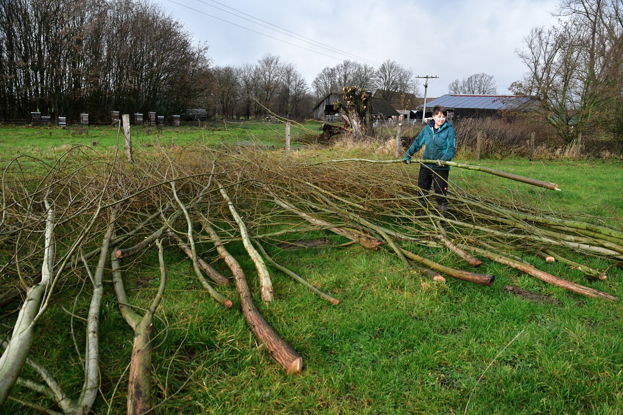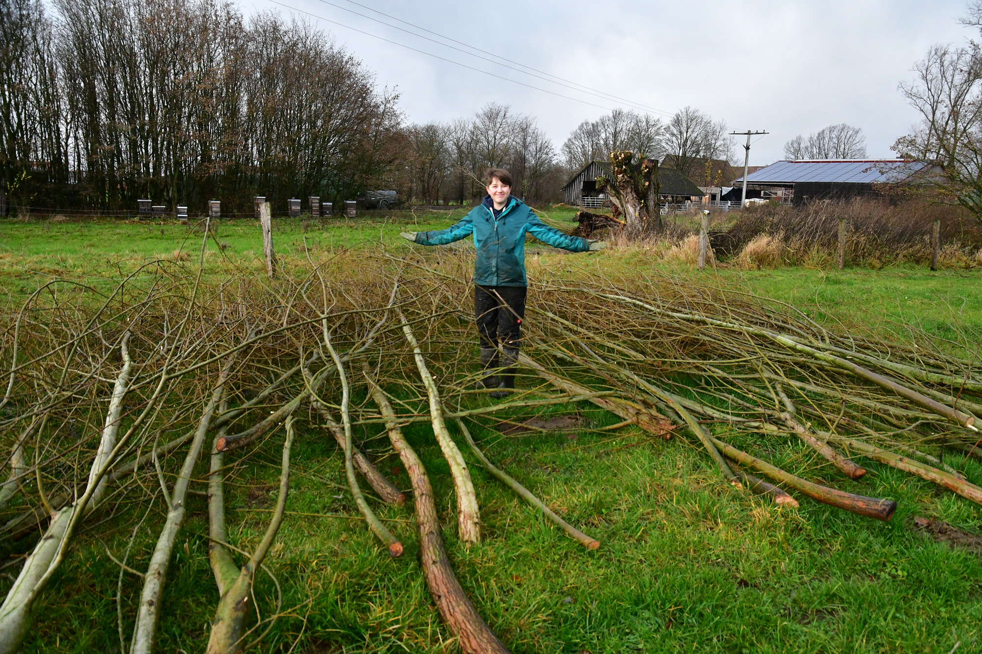 Die Abschnitte haben wir in einer Gemeinschaftsaktion (Mitglieder vom Verein anders ackern e.V. und FÖJ-ler Charlie) weggeräumt. Im Frühling soll eine lebende Weidenhecke zwischen dem Laakenhof Garten und dem Permakultur Waldgarten angelegt werden. Dazu werden wir die Ruten in den nährstoffreichen Boden stecken und so anordnen, dass die Triebe später eine dichte Weidenhecke bilden. Weidenzweige eignen sich hervorragend zum Bauen und Basteln – ob als Flechtzaun, Korb oder als lebendes Tipi, die Ruten sind für Allerlei zu gebrauchen.