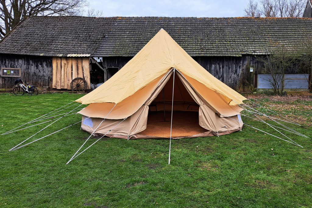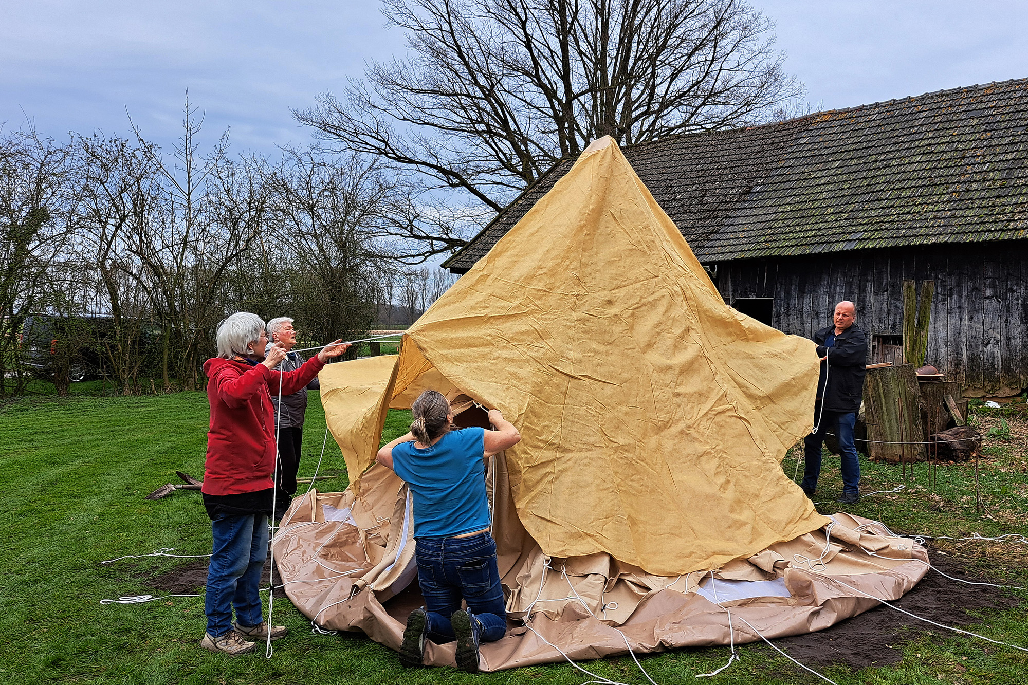 Wir sind ganz stolz: ein wetterfestes Canvas Tipi-Rundzelt wurde jetzt im Permakultur Waldgarten aufgebaut. Das Förderprogramm „2.000 x 1.000 Euro für das Engagement“ vom Land NRW hatte im Jahr 2023 das Thema „Nachhaltigkeit“ in den Fokus gerückt. Die zahlreichen Projekte vom Verein anders ackern e.V. haben bei der Antragstellung überzeugt, jetzt können interessierte Menschen noch näher an diesen Projekten mitwirken. Das Tipi-Rundzelt mit einem Durchmesser von 5 Metern, bietet uns tolle Aufenthaltsmöglichkeiten.