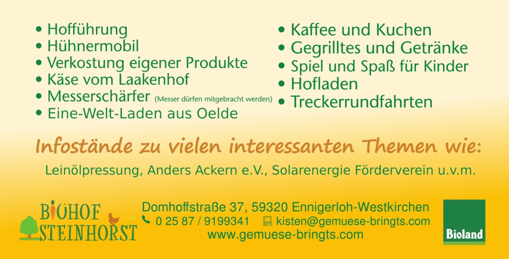 Am Sonntag, den 01. September findet auf dem Biohof Steinhorst das diesjährige Hoffest von Gemüse bringt’s statt.