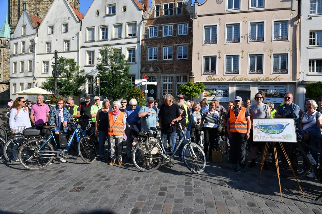 Gestartet wurde in Ennigerloh, danach ging es über Westkirchen und Freckenhorst nach Warendorf zum Kreishaus. Dort wurden die Forderungen des “Klimabündnisses im Kreis Warendorf” an den Landrat und die Fraktionen des Kreistages übergeben. Anschließend ging es weiter zu den Emsinseln, um auf die grüne Lunge in Warendorf aufmerksam zu machen, und zu den geplanten Baumfällungen zu informieren. Wie ist das vereinbar mit dem Klimanotstand? Auf dem historischen Warendorfer Marktplatz fand die Abschlusskundgebung statt.