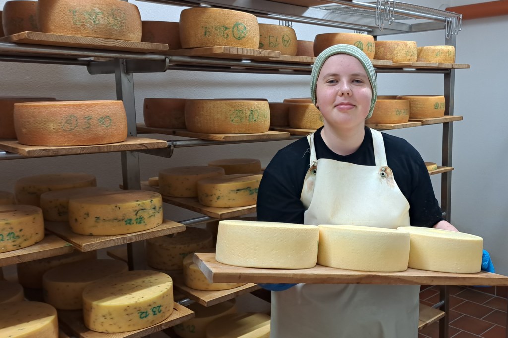 „Ich finde es sehr spannend, den Weg von frisch gemolkener Milch bis hin zum fertig gereiftem Käse in so vielen verschiedenen Varianten zu verfolgen. Der Prozess zwischen Tier Versorgung, Stall Pflege und melken bis hin zu fertig gereiftem Käse ist sehr aufwendig und zieht sich über viele Wochen hin. Man schätzt Lebensmittel wie Käse und andere Milchprodukte viel mehr, wenn man so etwas mal selbst macht.”