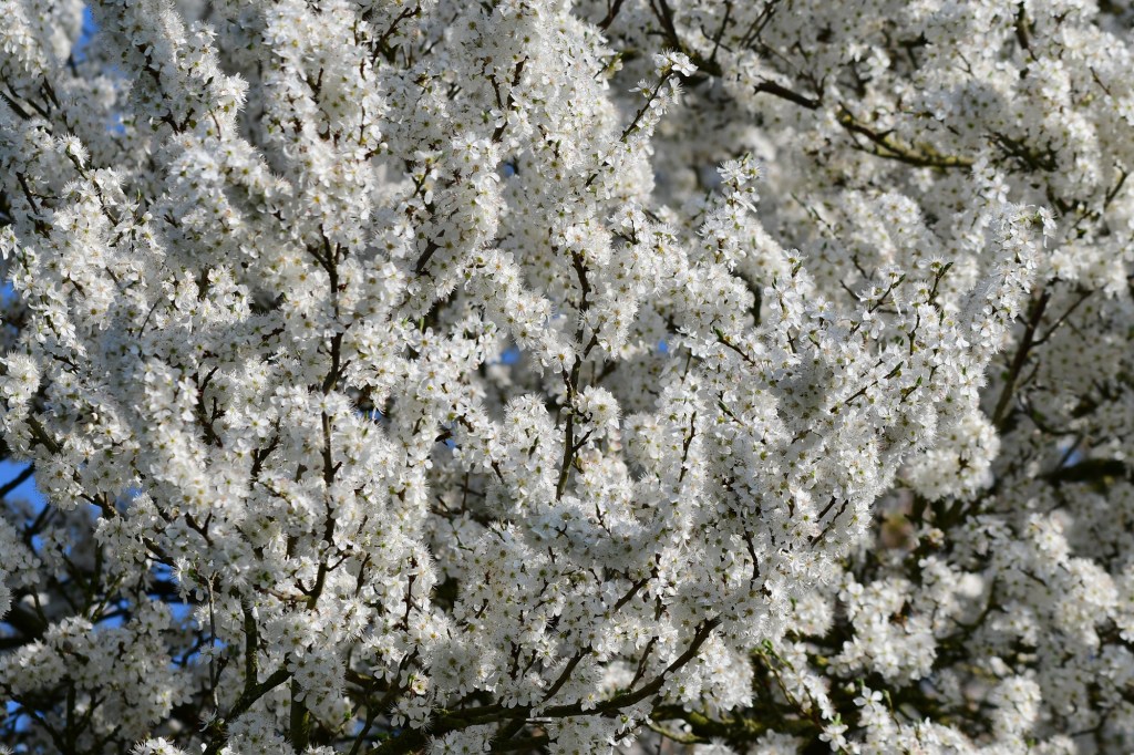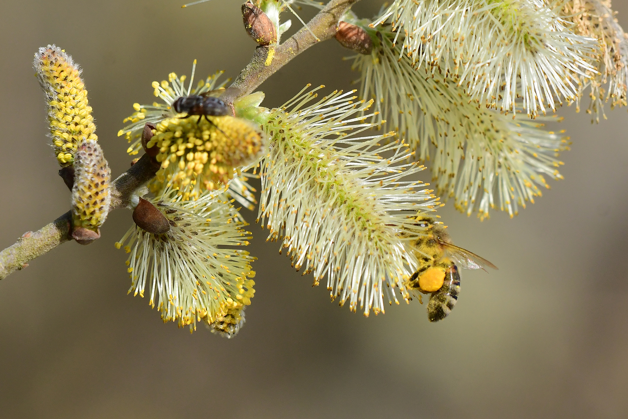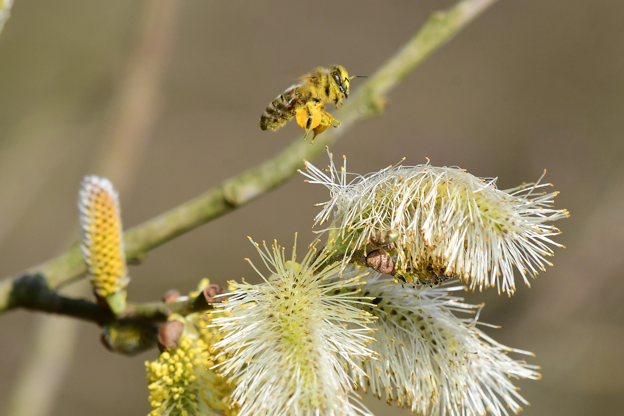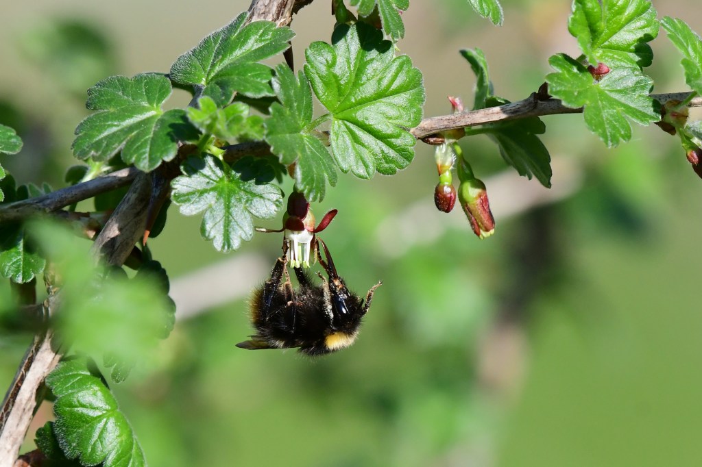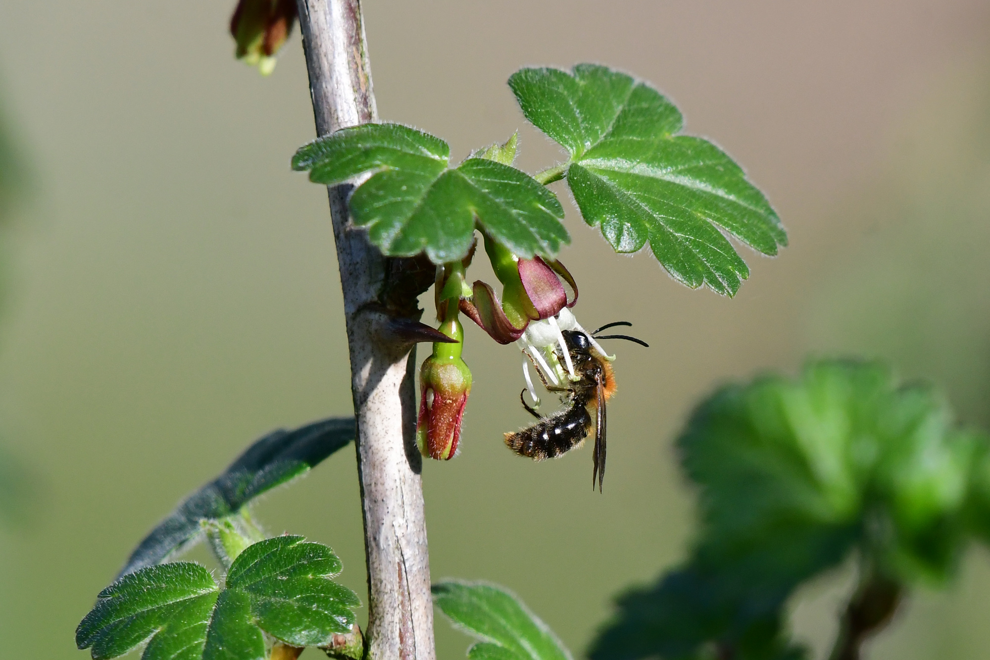 Zierpflaume, Mirabelle und die eher unscheinbare Blattentfaltung und Blüte der Stachelbeere sind ein Zeichen für den Beginn des Erstfrühlings und eröffnen damit die Obstblüte. Bei zweistelligen Temperaturwerten und Sonnenschein können wir im Permakultur Waldgarten fast täglich Veränderungen erkennen. Frösche springen platschend in den Teich, wenn sie bei ihrem Sonnenbad gestört werden, Wildbienen und Hummeln fliegen emsig von Blüte zu Blüte, tragen riesige Pollenballen an ihren Hinterbeinen.