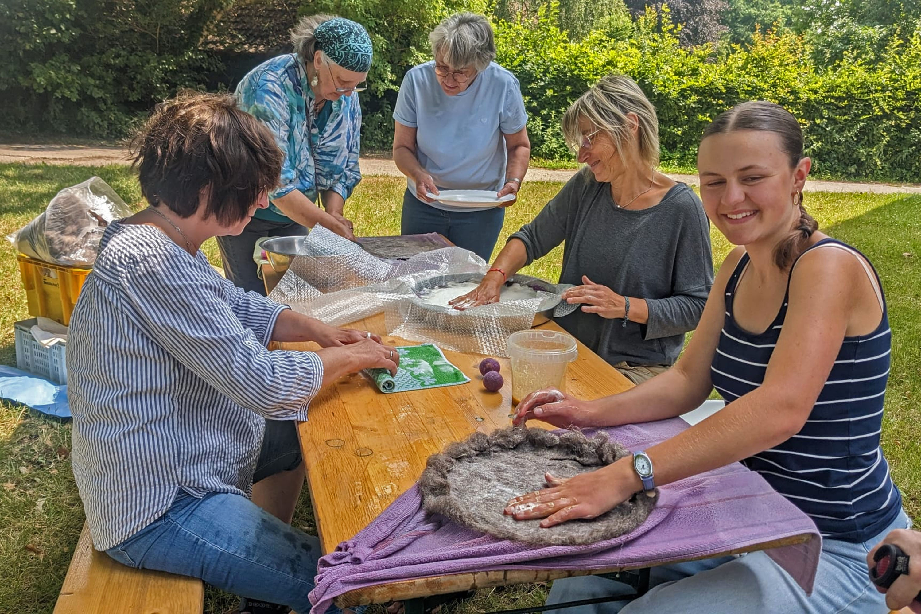 Sichtlich zufrieden und motiviert für weitere Filzstücke, haben die Teilnehmerinnen Ihre selbst gefilzten Teile mitgenommen.